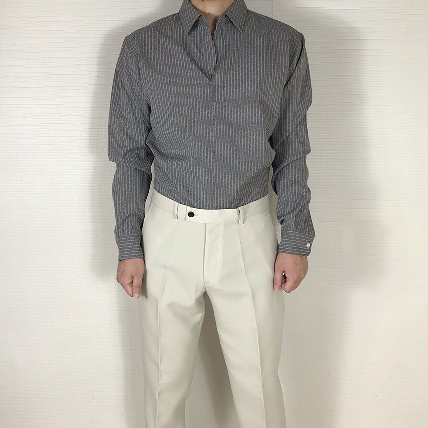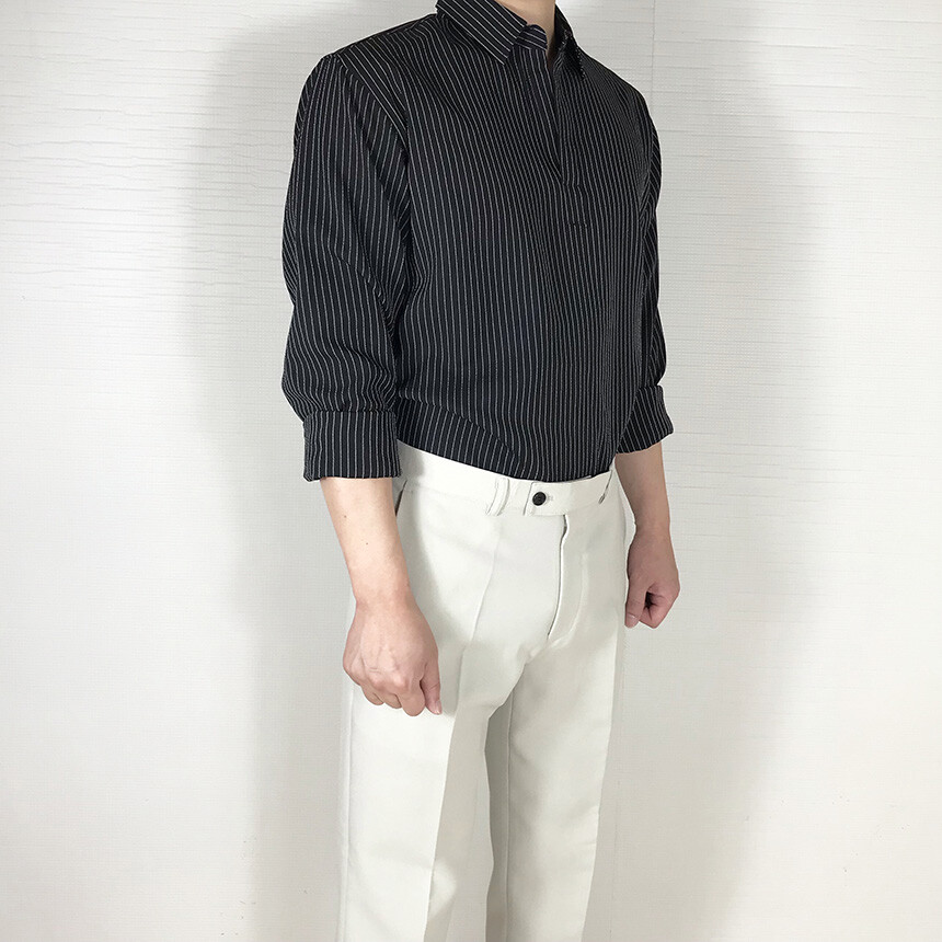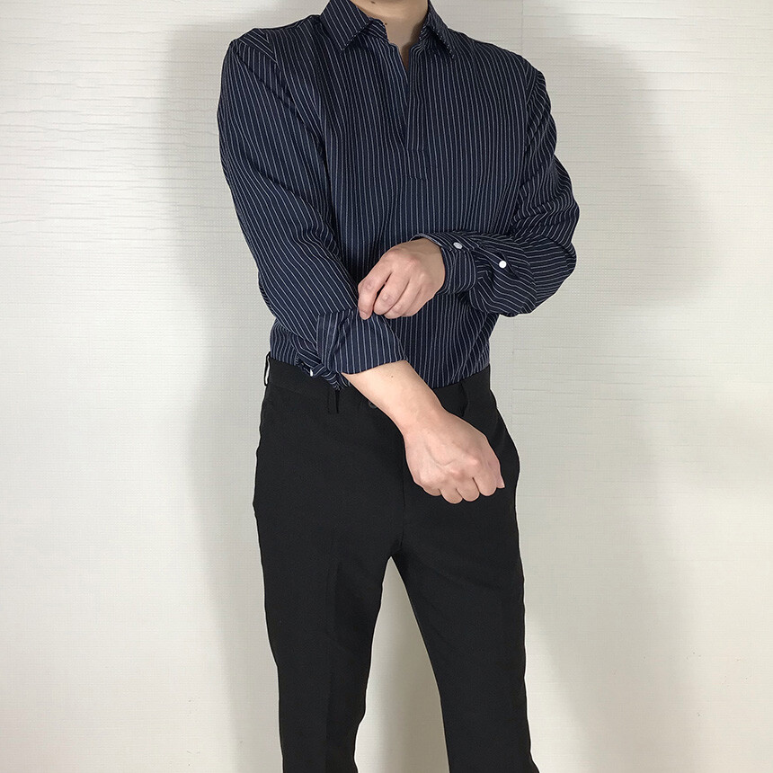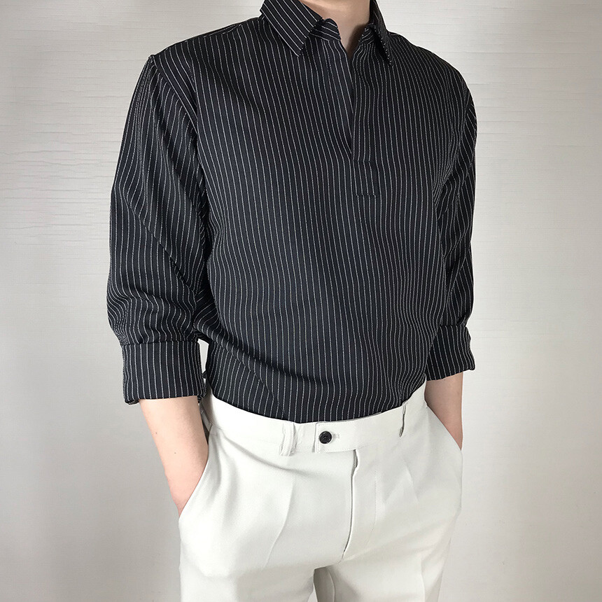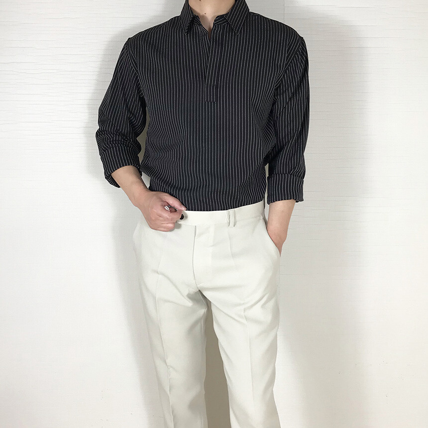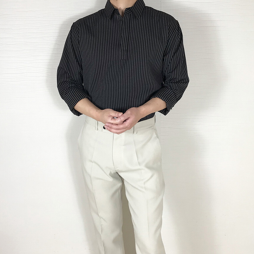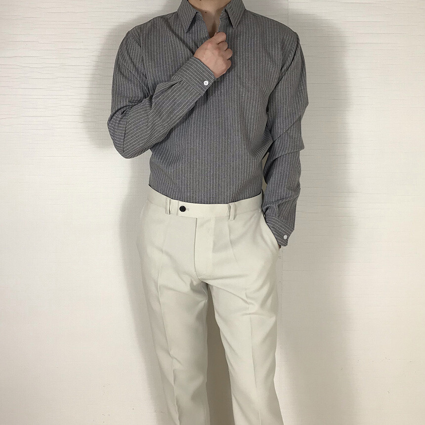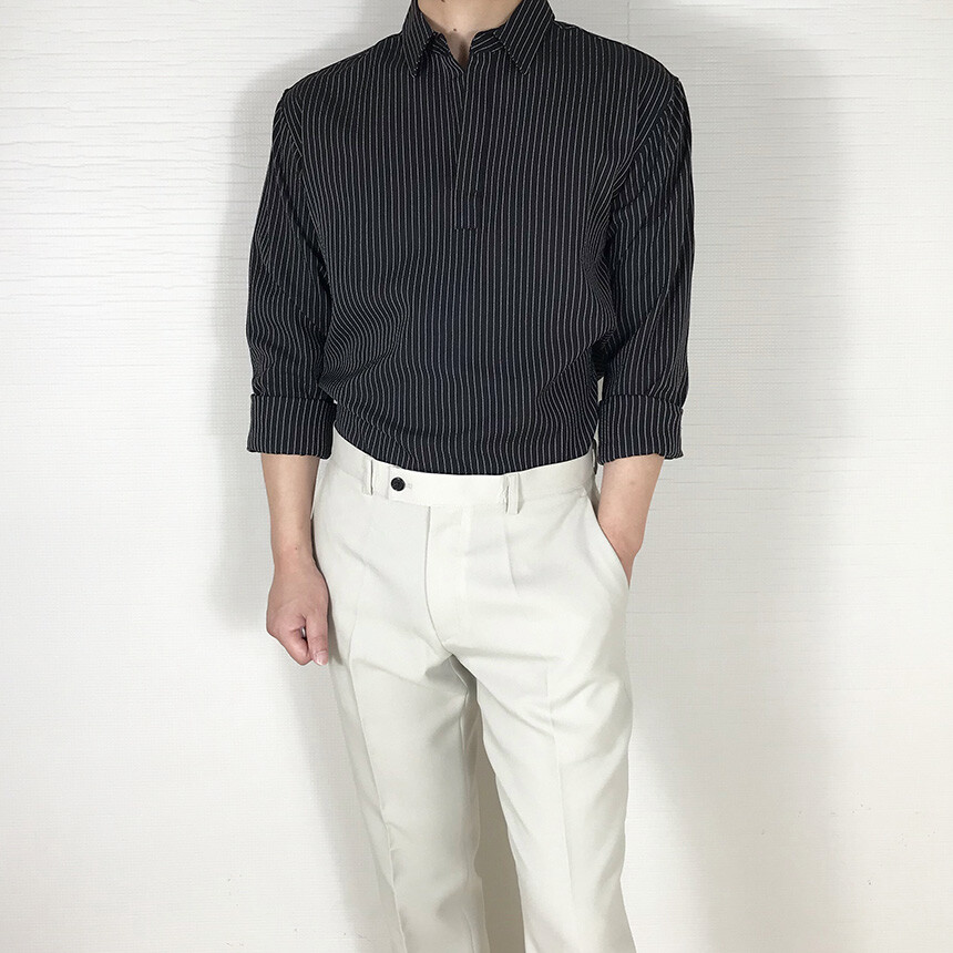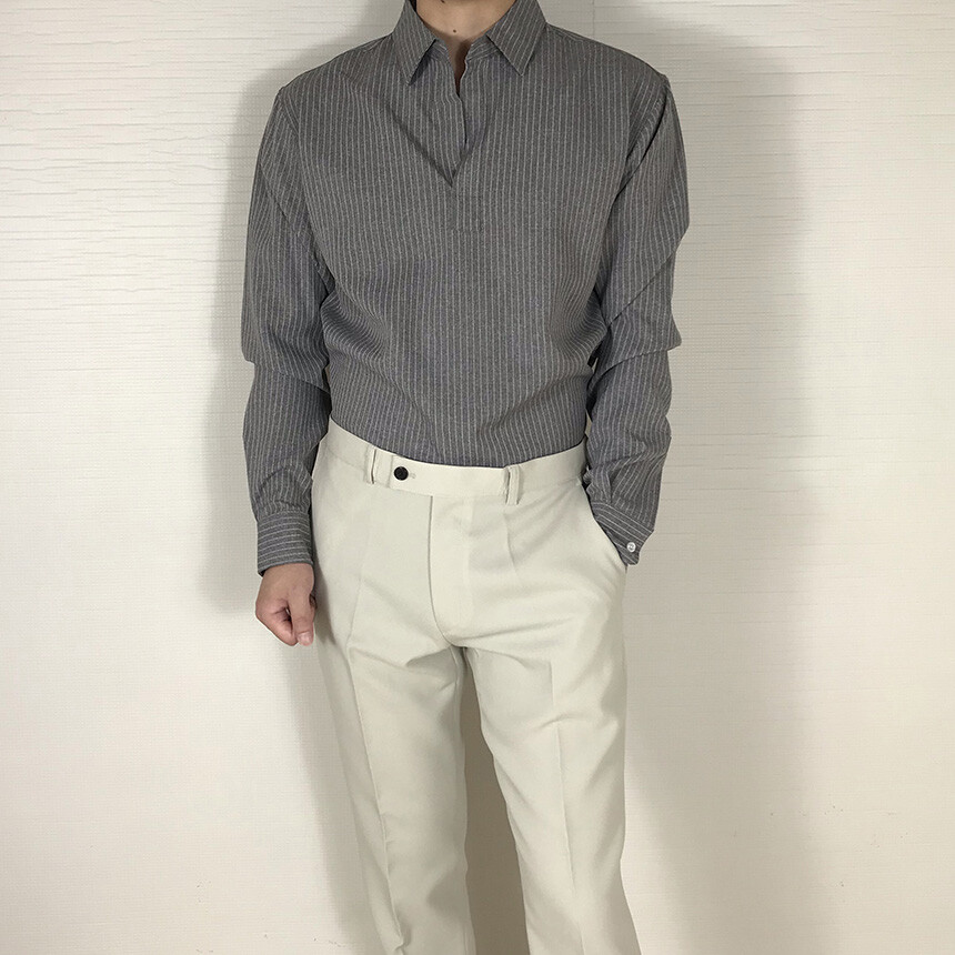 (spring) 세미오버핏 반오픈 스트라이프 셔츠(4col) [0035]
