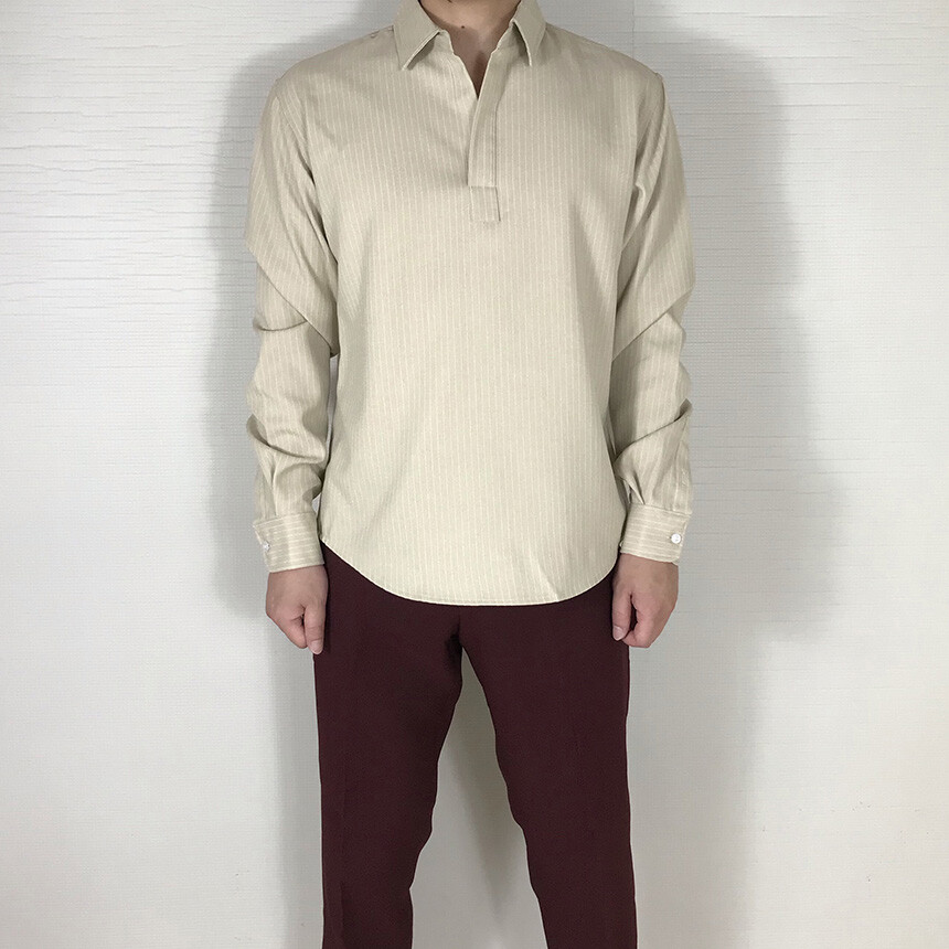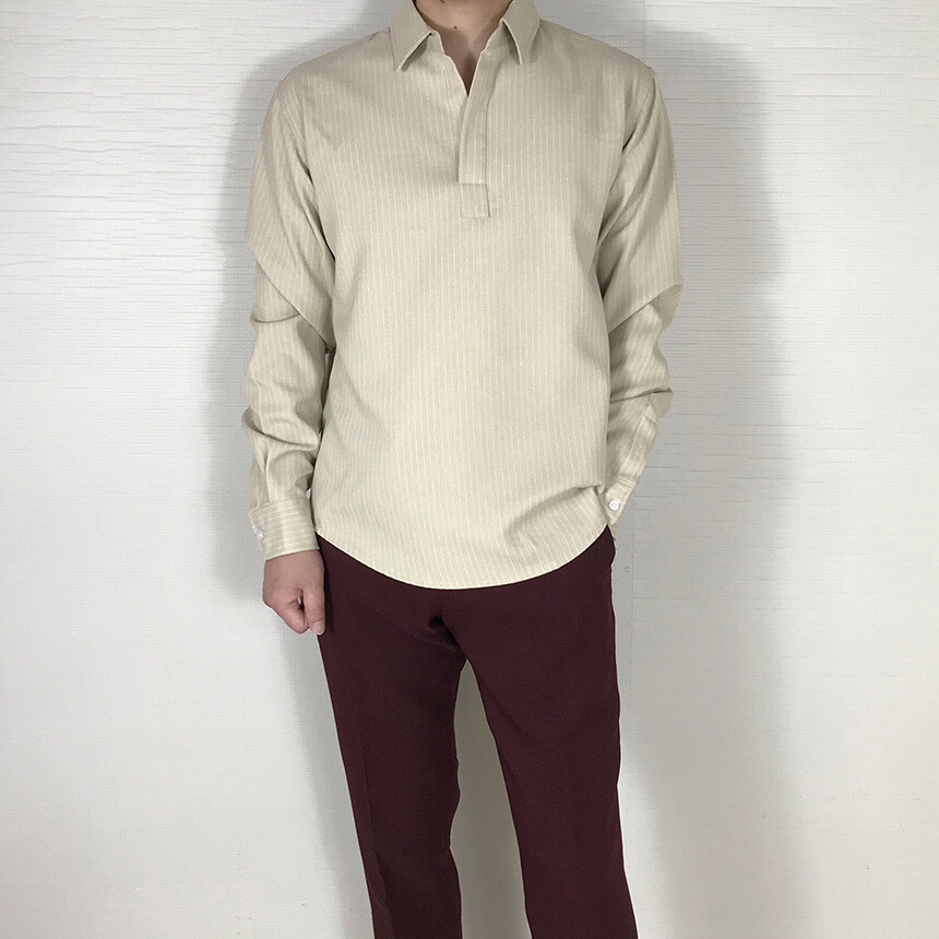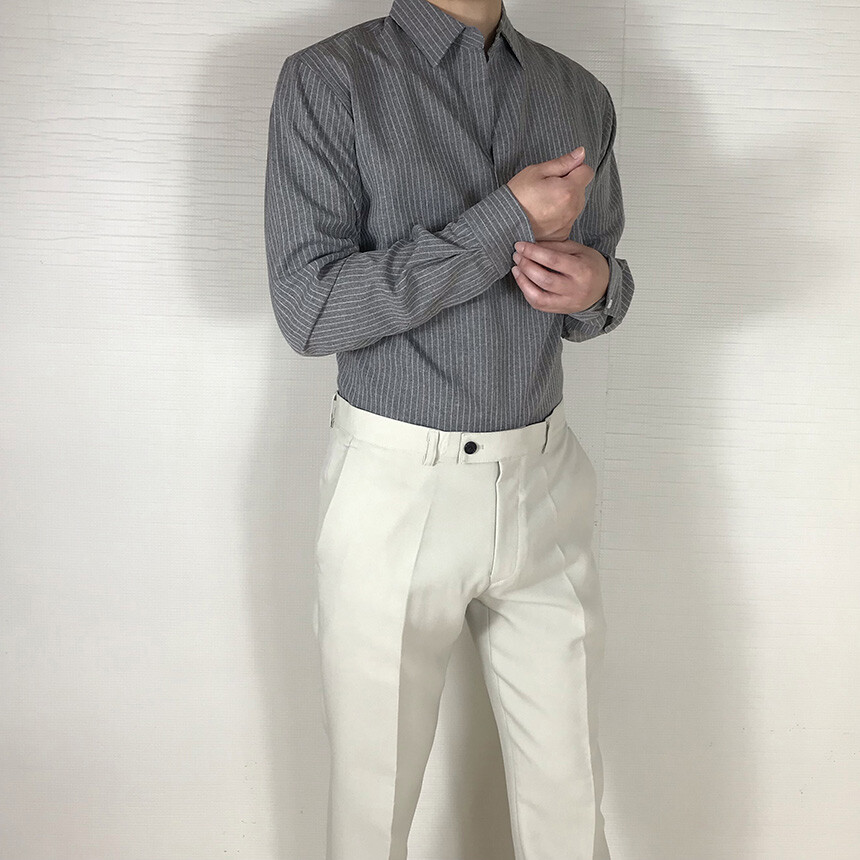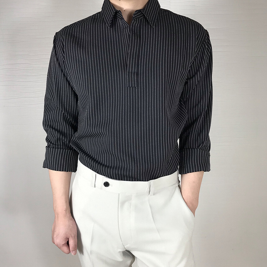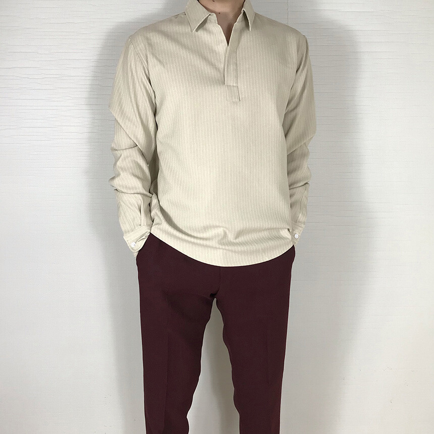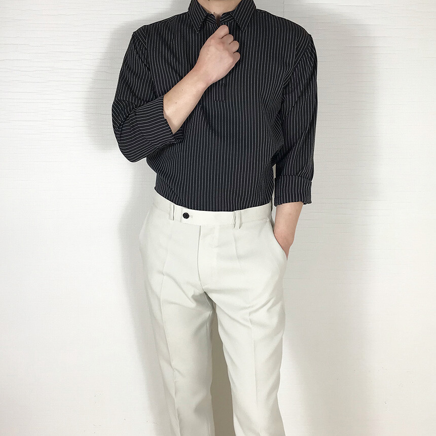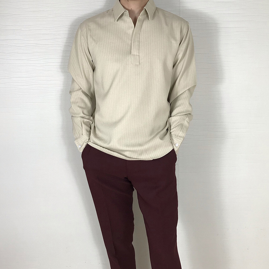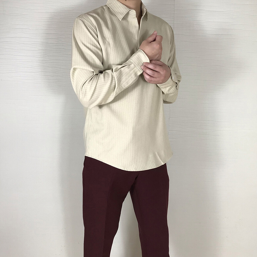 (spring) 세미오버핏 반오픈 스트라이프 셔츠(4col) [0035]