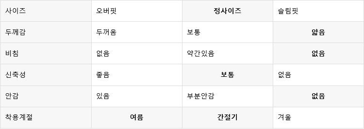 평소 입던 스타일과 달라 만족도가 낮을 수 있습니다