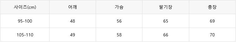 예시)본인사이즈100이면 100-105사이즈 구매 권장