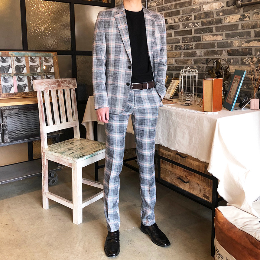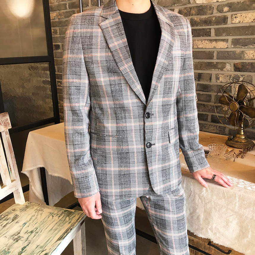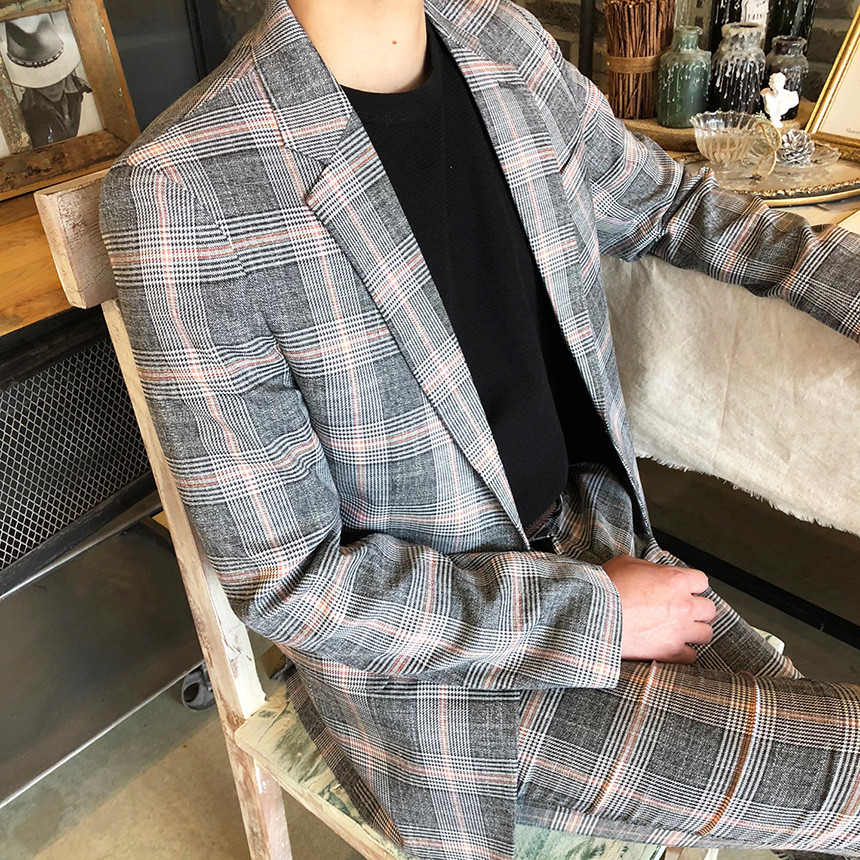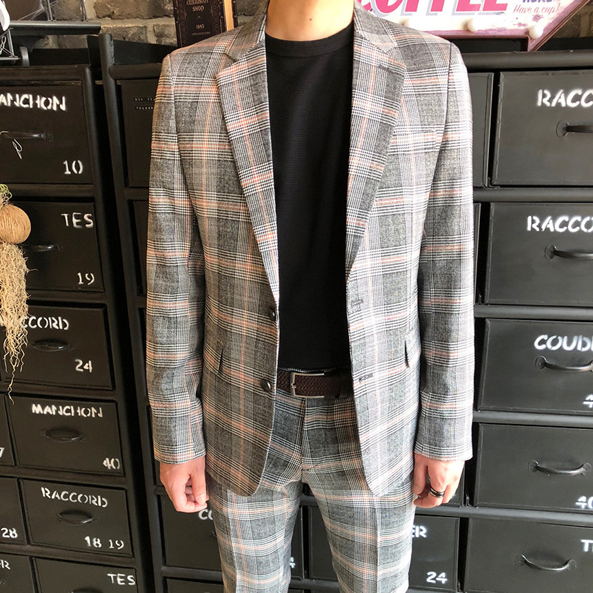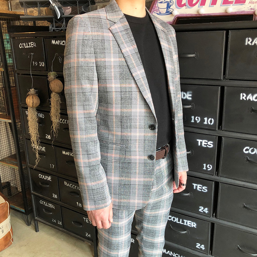 (summer) 슬림 체크 그레이 모던 셋업 [1116]