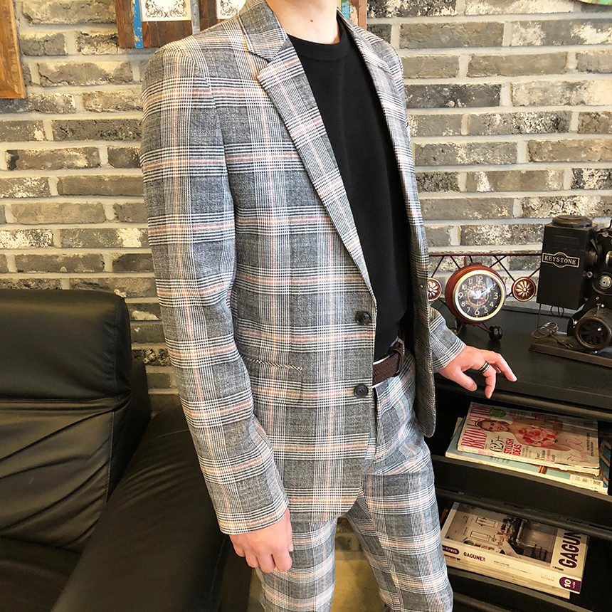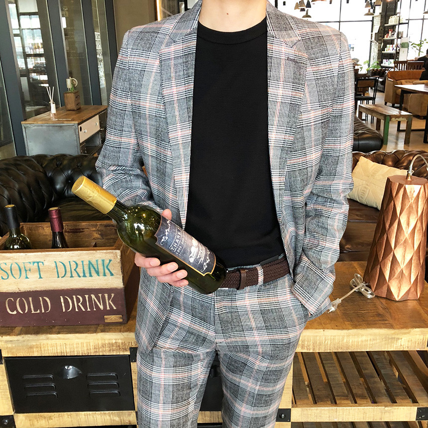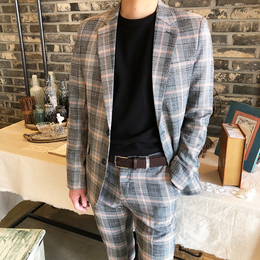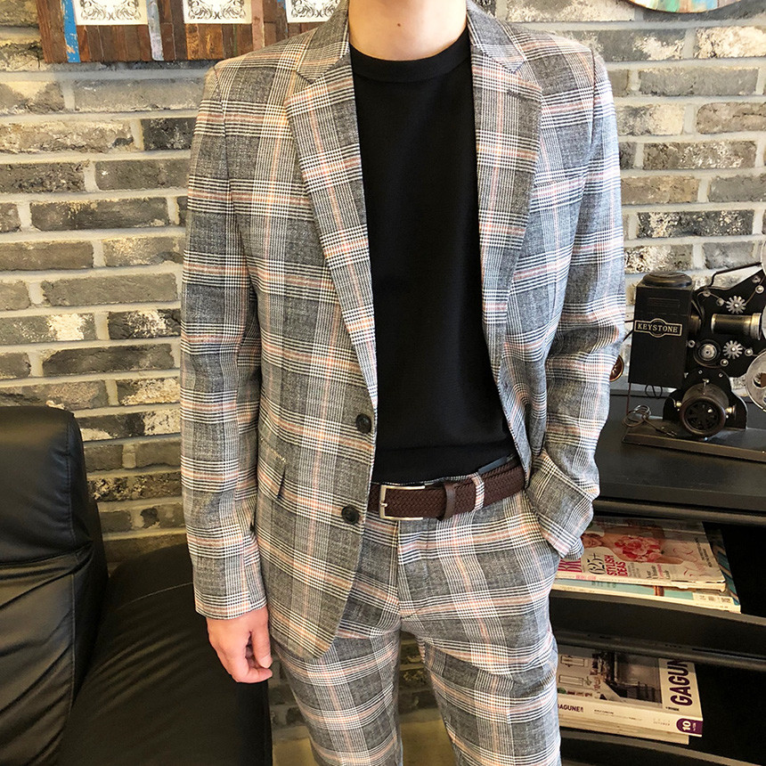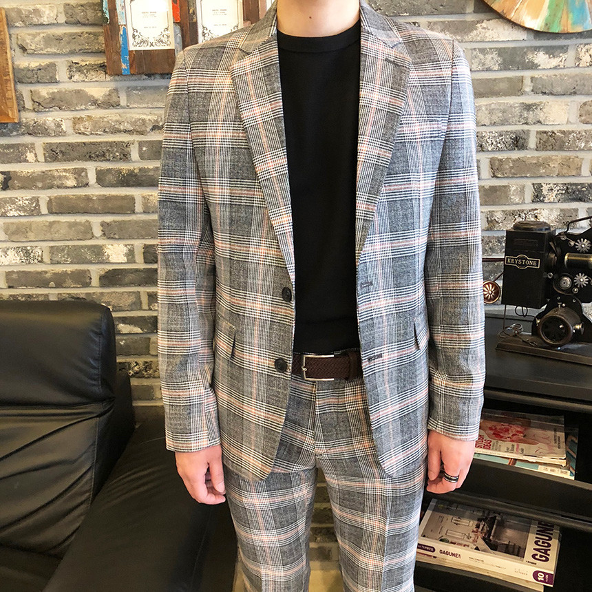 (summer) 슬림 체크 그레이 모던 셋업 [1116]