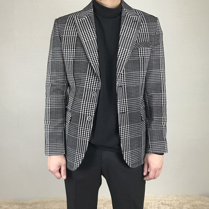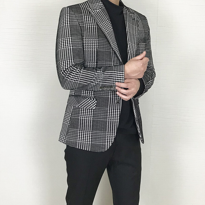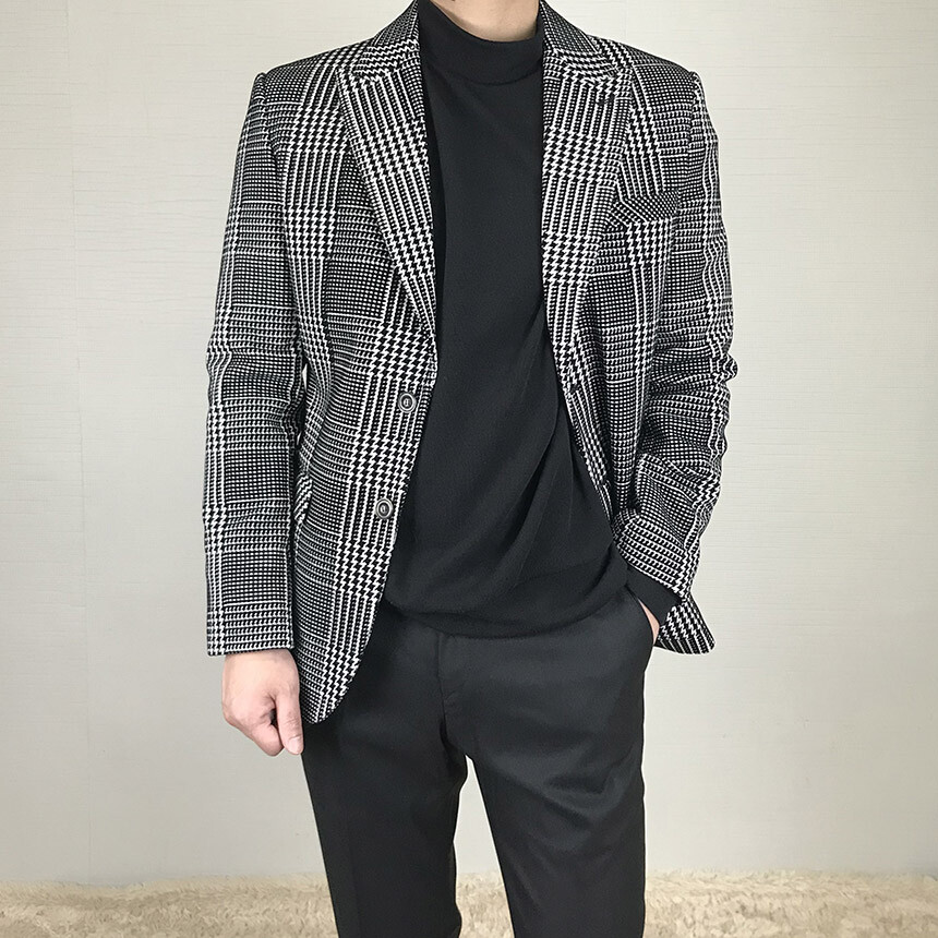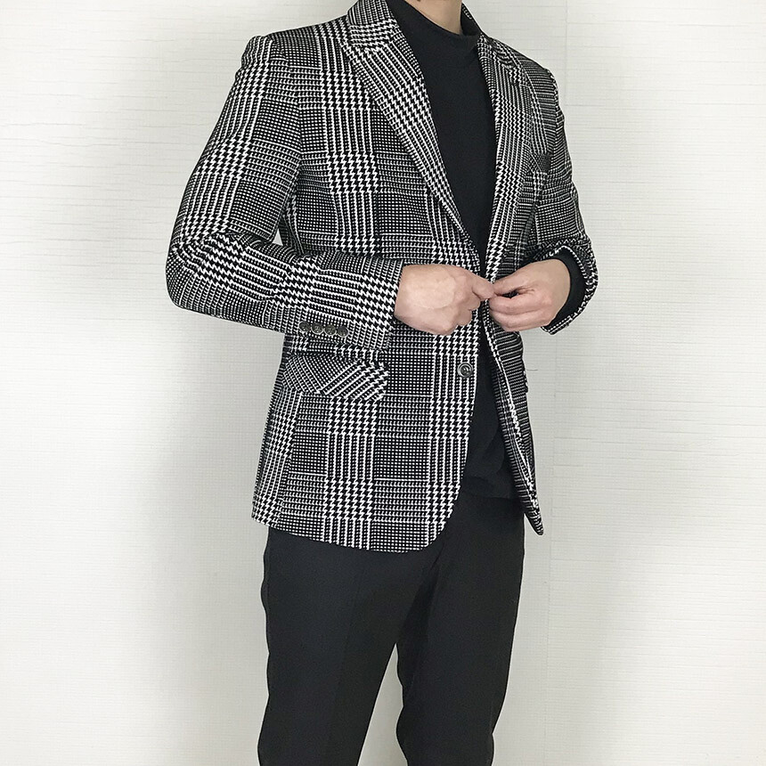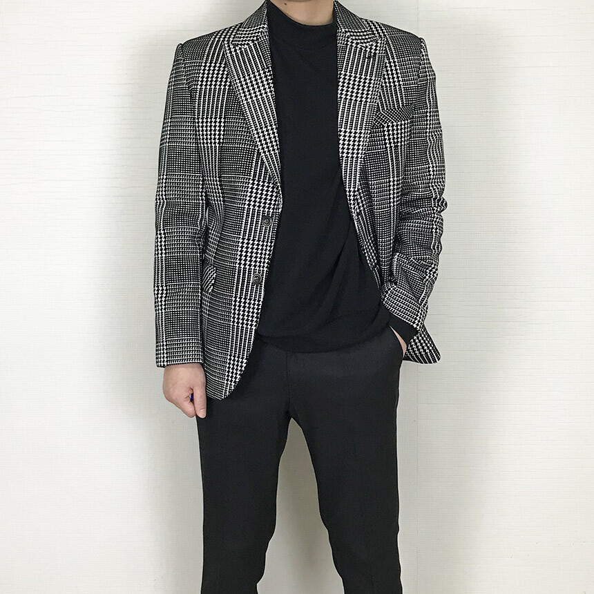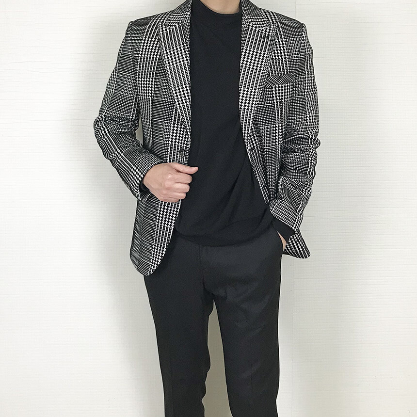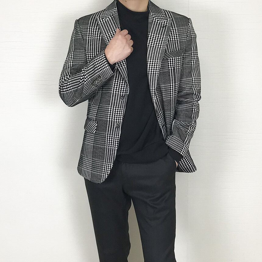 (겨울) 제비 체크 블랙 슬림 블레이저