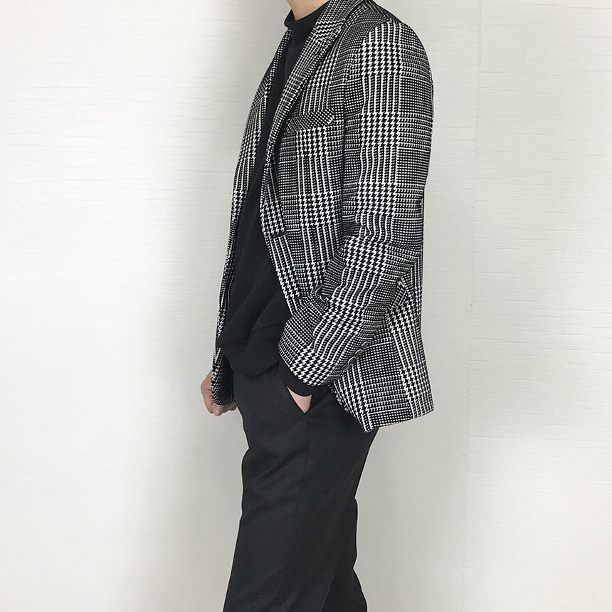 (겨울) 제비 체크 블랙 슬림 블레이저 [BXAJLBW1184]