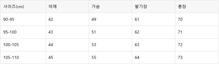 예시)본인사이즈100이면 100-105사이즈 구매 권장