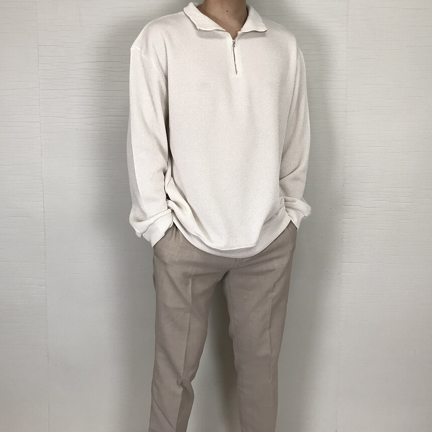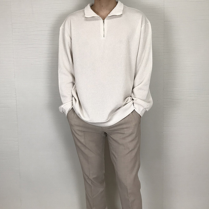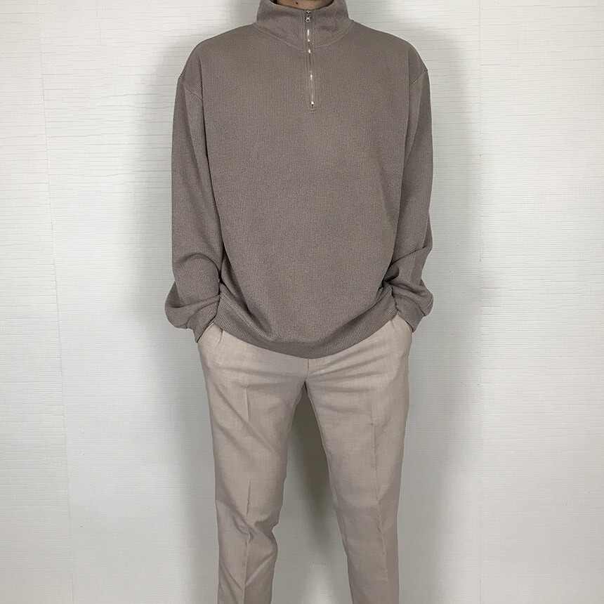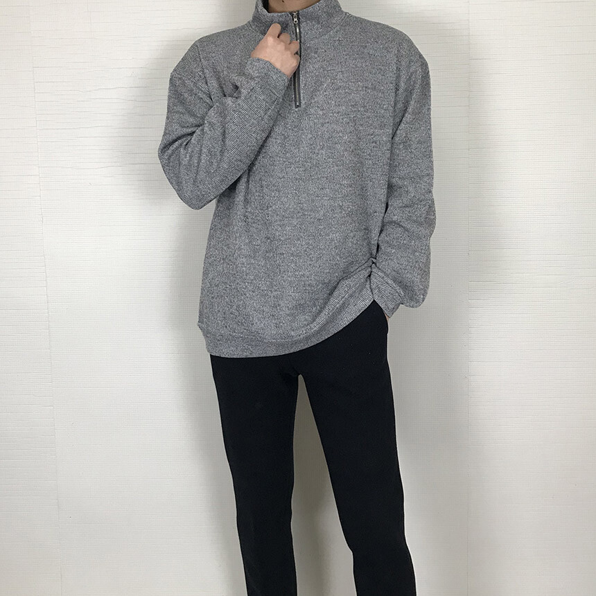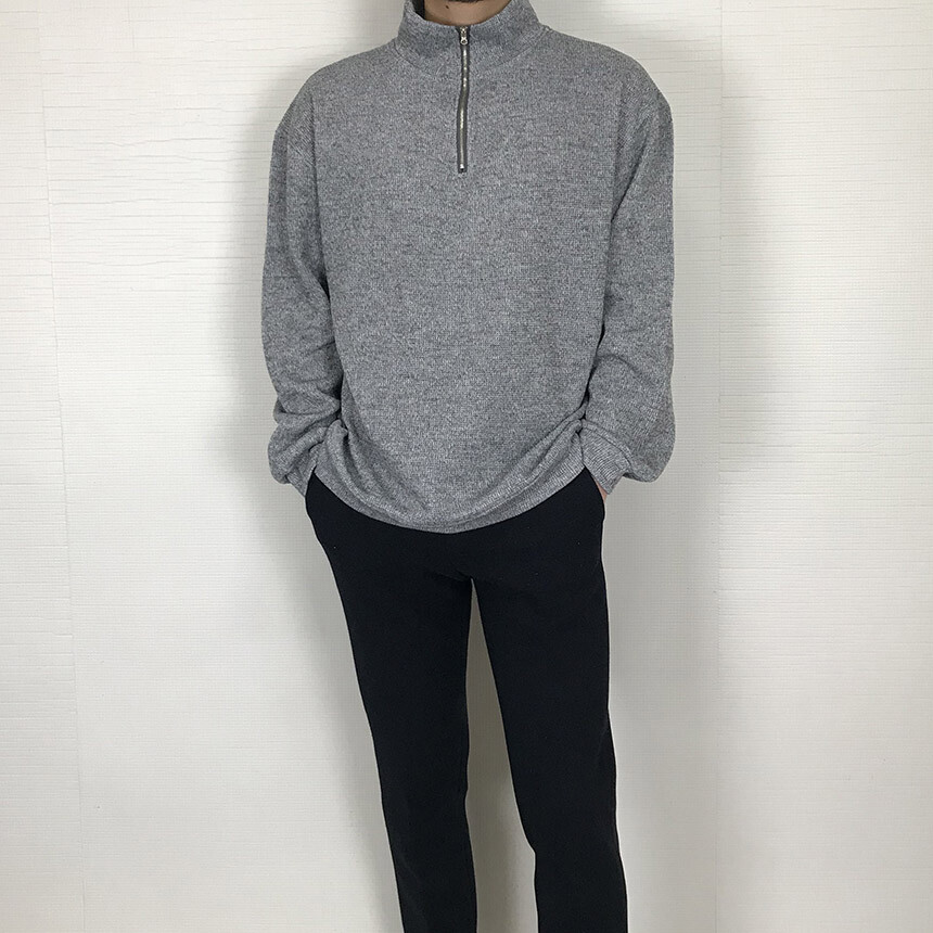 (Spring) 오버핏 반집업 니트 맨투맨(3col) [BXATLCS1403]