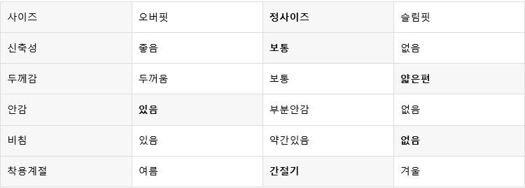 평소 입던 스타일과 달라 만족도가 낮을 수 있습니다