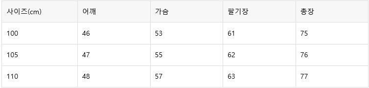 예시)본인사이즈100이면 100-105사이즈 구매 권장