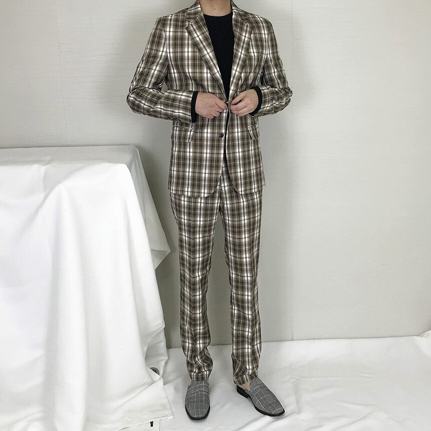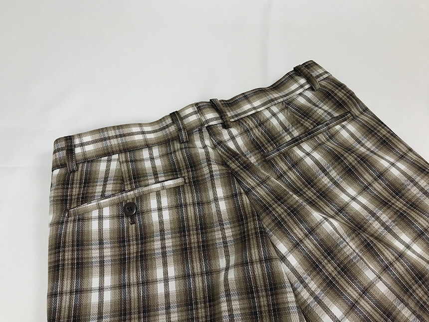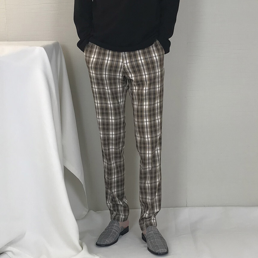 카키브라운 체크 슬림 슬랙스
