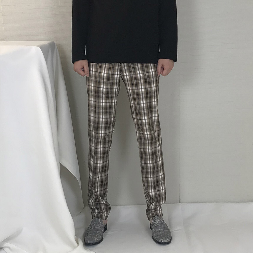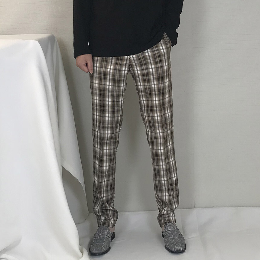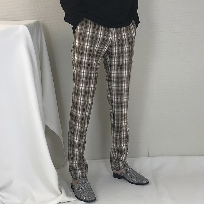 (autumn) 카키브라운 체크 슬림 슬랙스 [FLCF1900]