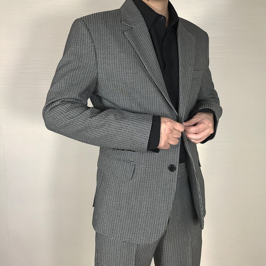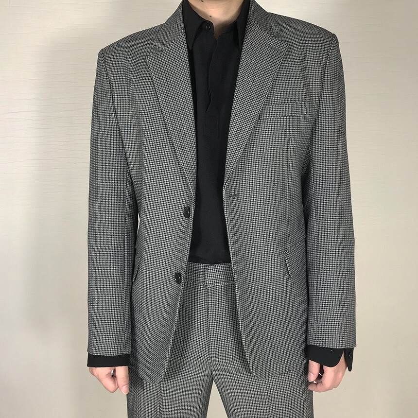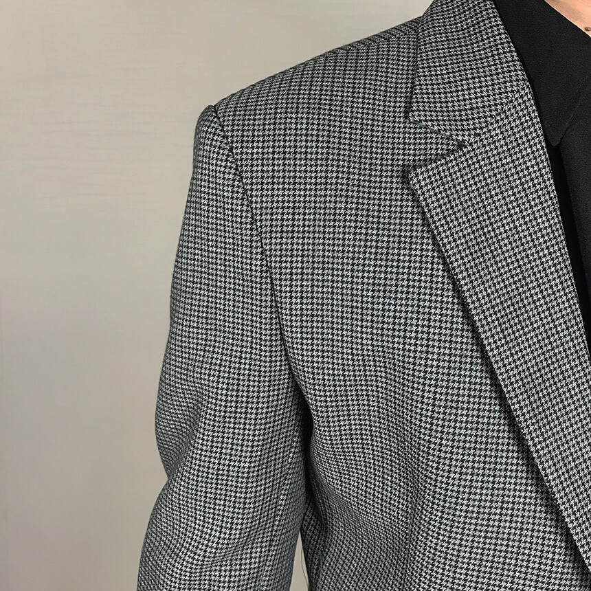 (간절기) 차콜 반밴딩 하운드체크 자켓