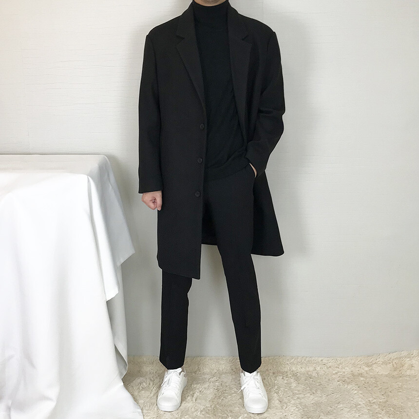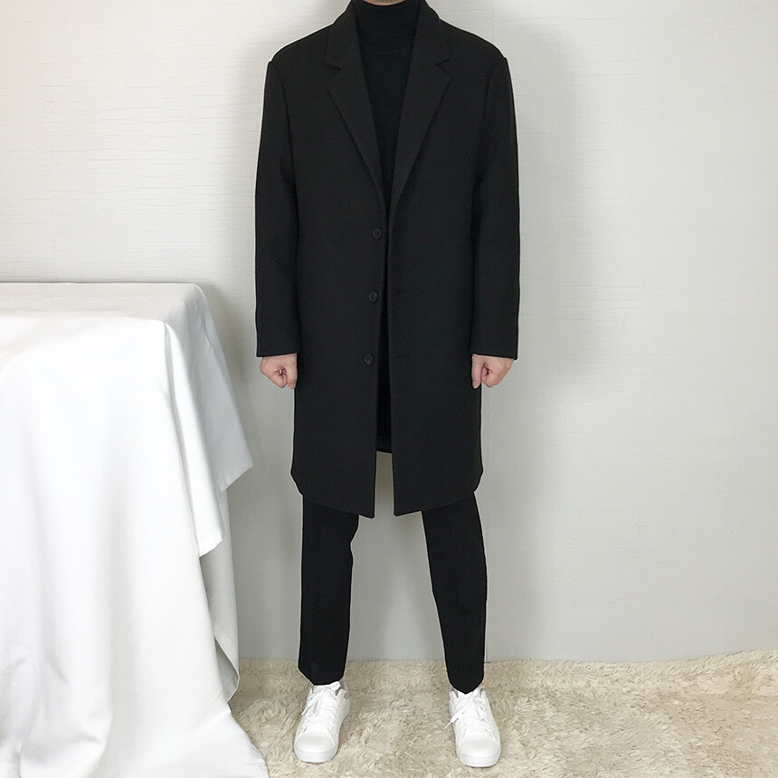 (winter) 오버핏 블랙 싱글 모직코트 [CLCW0202]