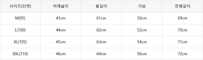 - 사이즈는 재는 방법에따라 약간씩 다를 수 있으며, 기성복으로 대량생산하기 때문에 사이즈는 약간씩 오차가 있을 수 있습니다