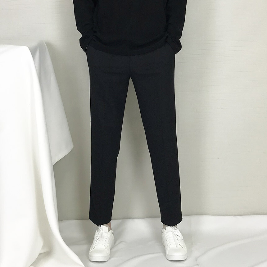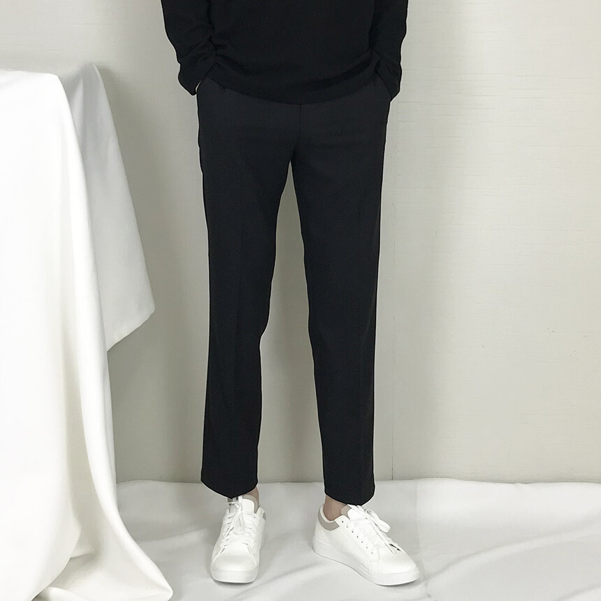 (autumn & winter) 블랙 테이퍼드 9부 스판 슬랙스 [FLCF1914]
