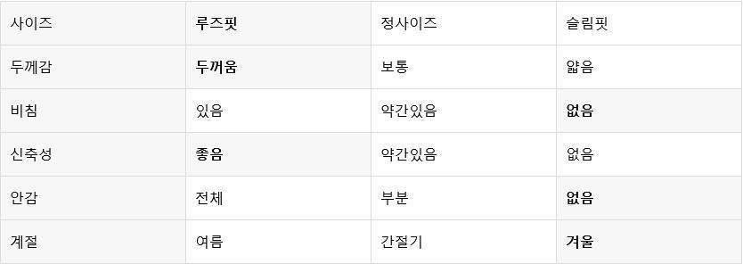 여유있는 루즈 핏의