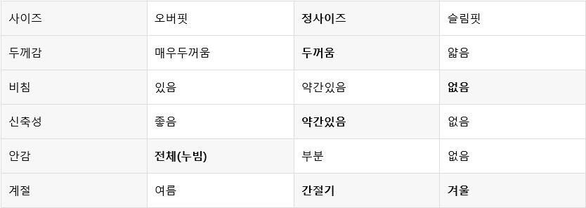 평소 입던 스타일과 달라 만족도가 낮을 수 있습니다