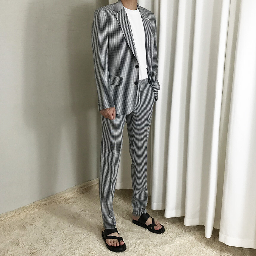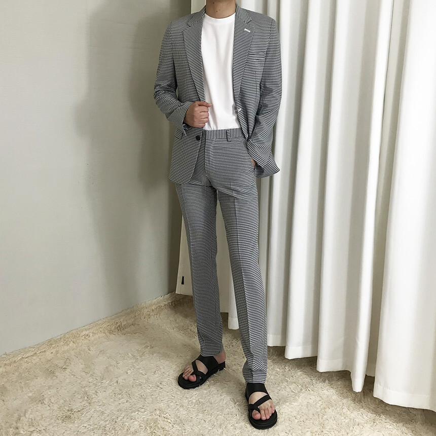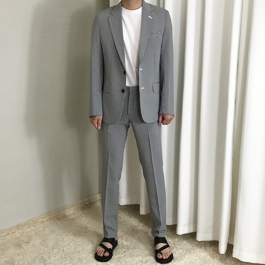 (summer) 슬림 블랙 체크 시어서커 정장 [BXAFLBM1622]