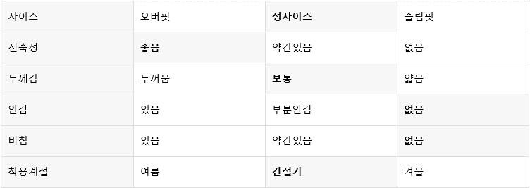 평소 입던 스타일과 달라 만족도가 낮을 수 있습니다