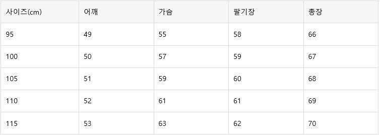 예시)본인사이즈100이면 100-105사이즈 구매 권장