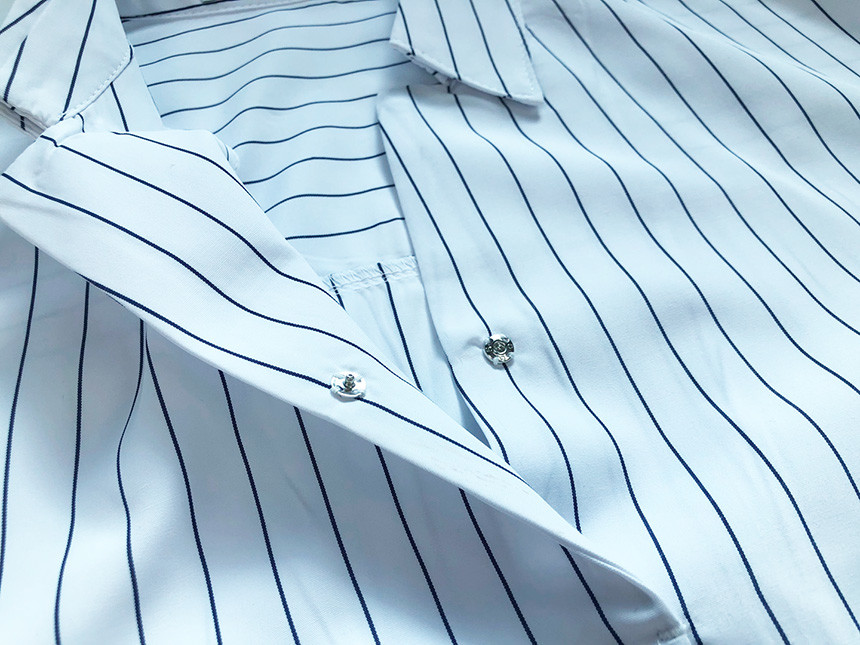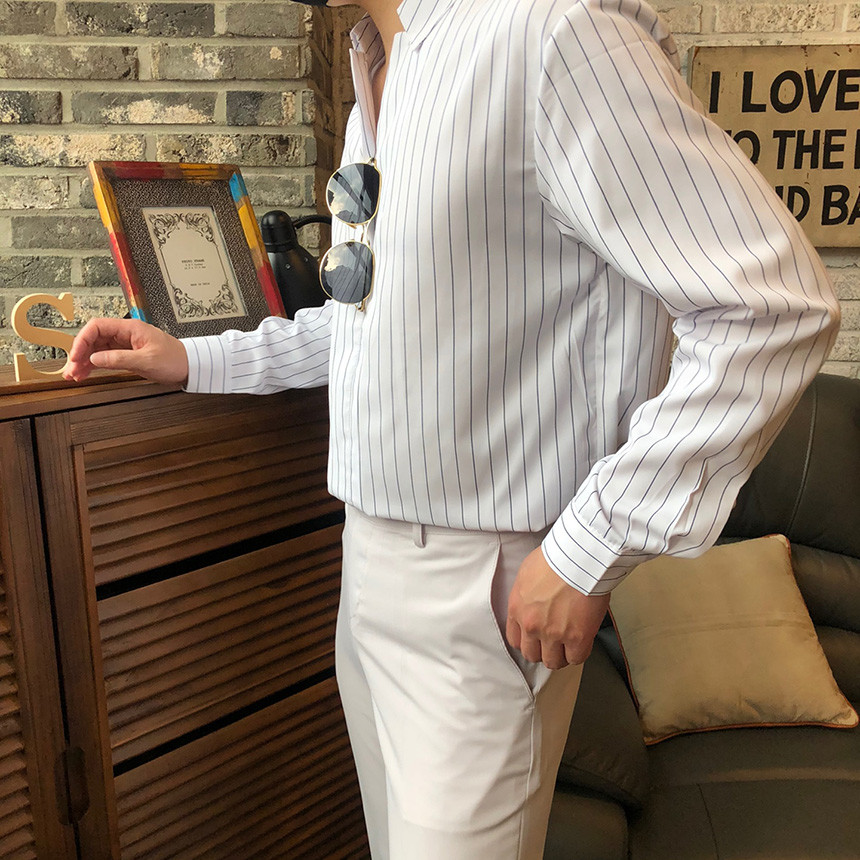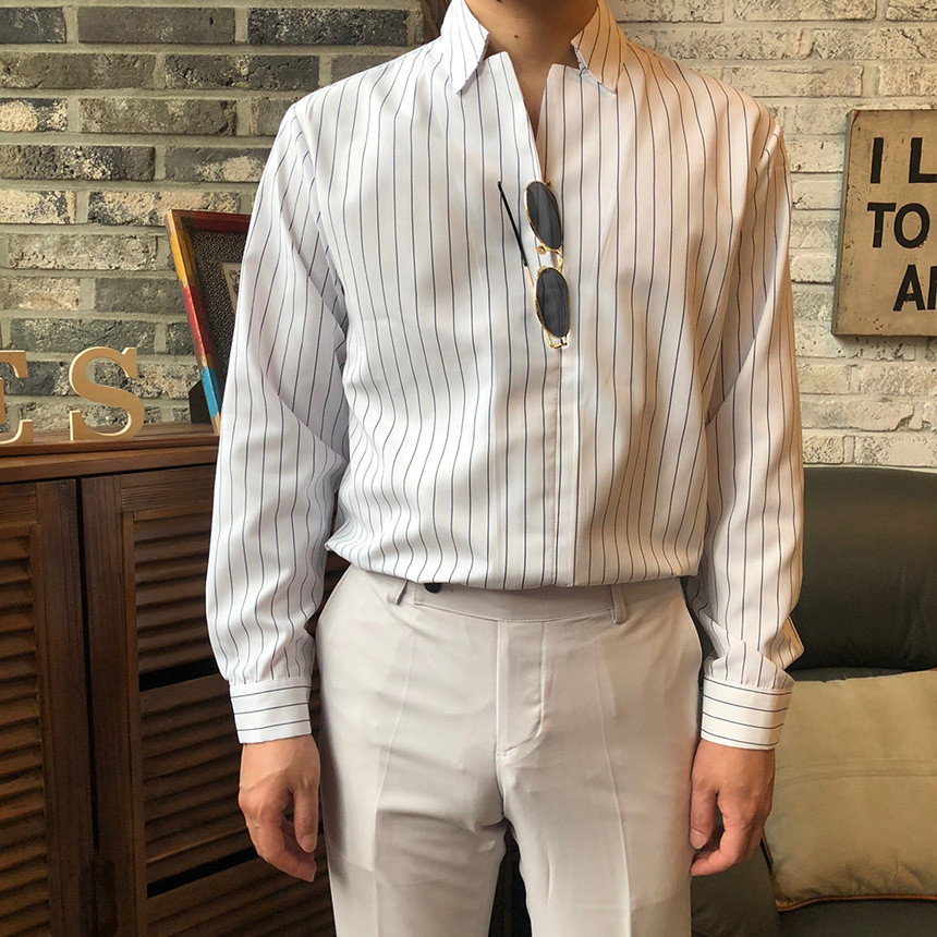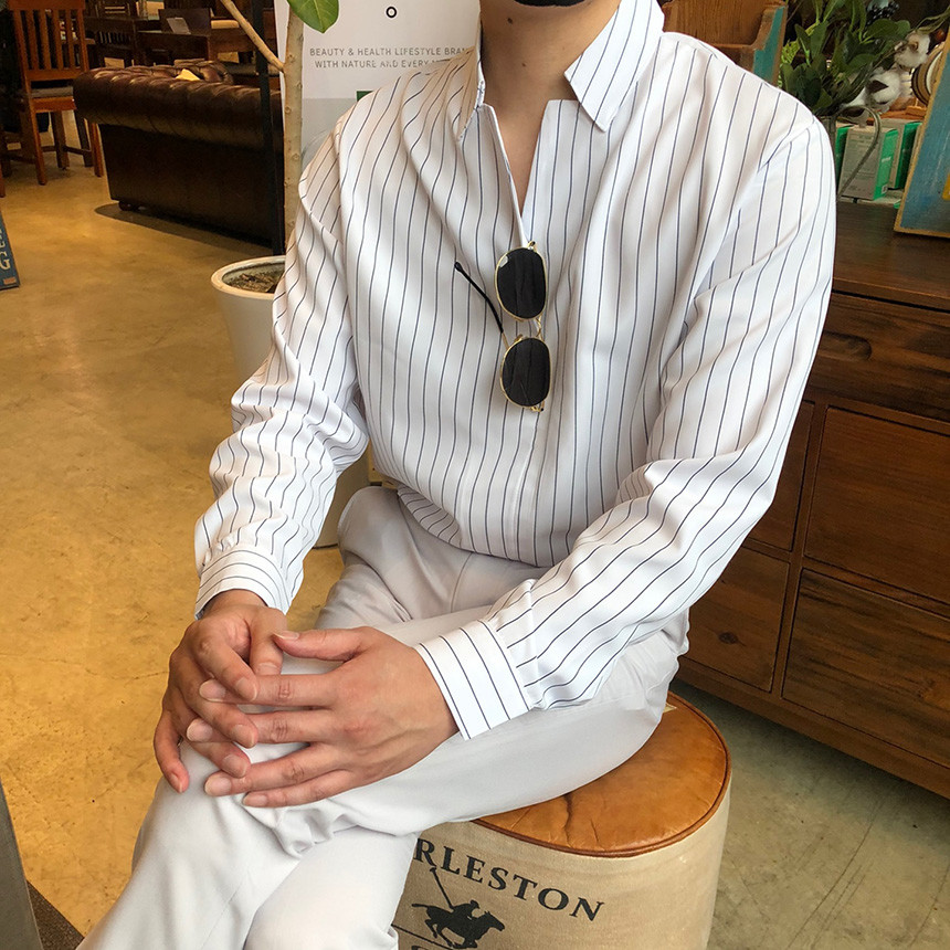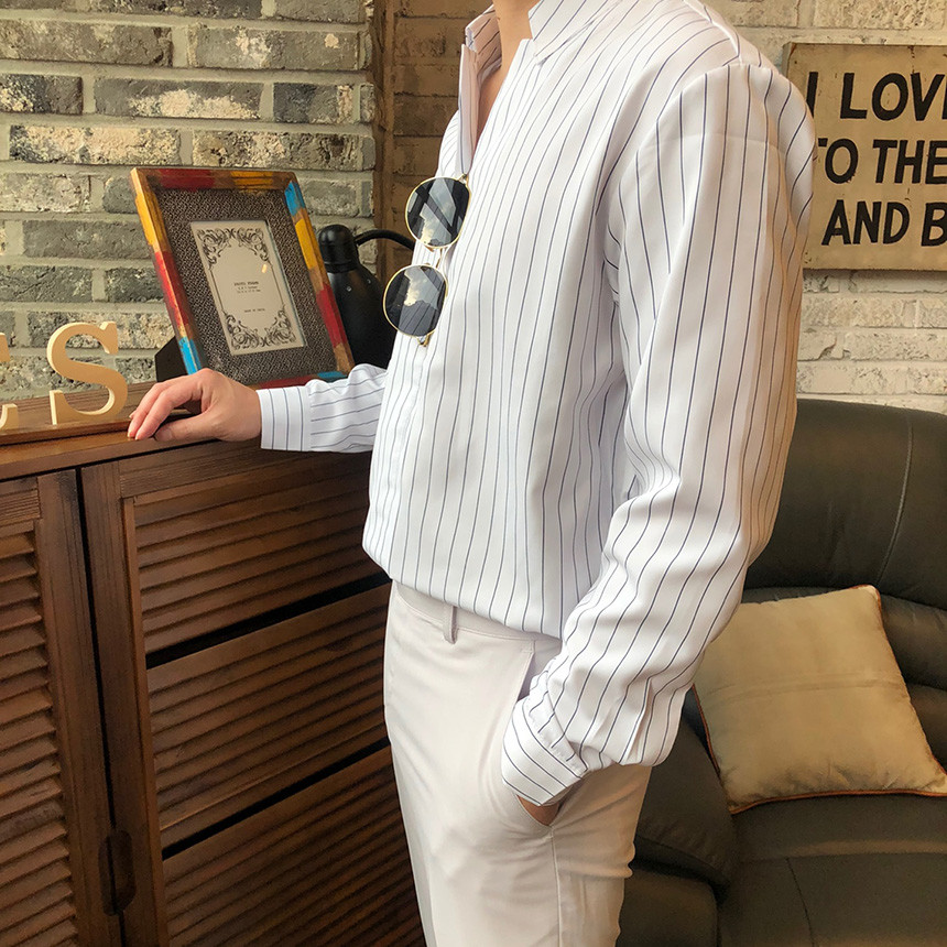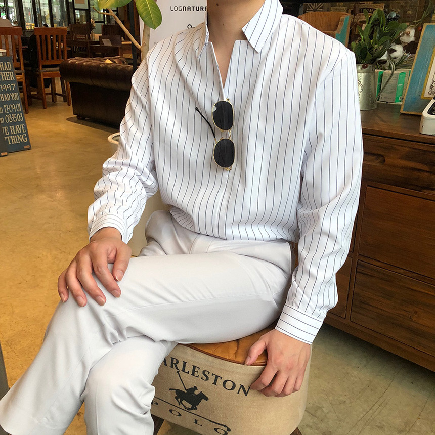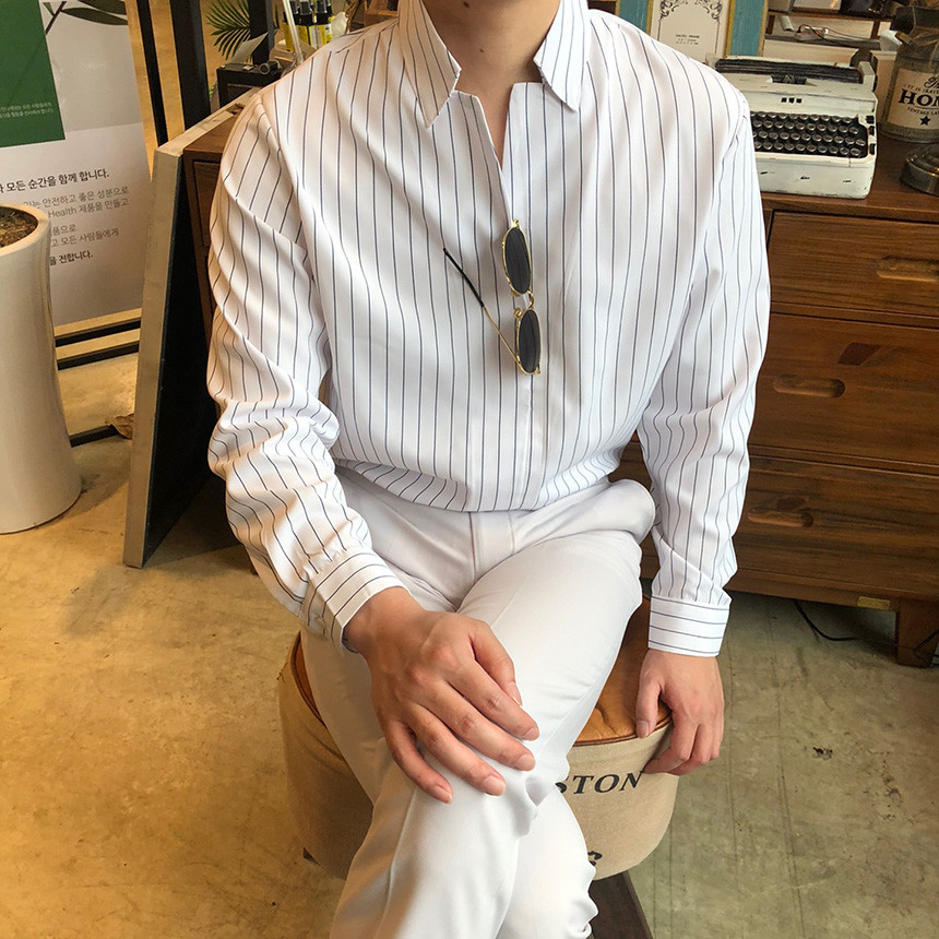 (spring) 화이트 스트라이프 반오픈 스냅 셔츠 [S116]