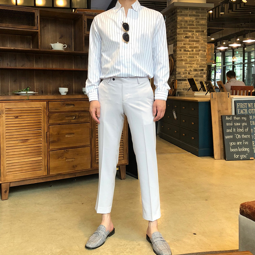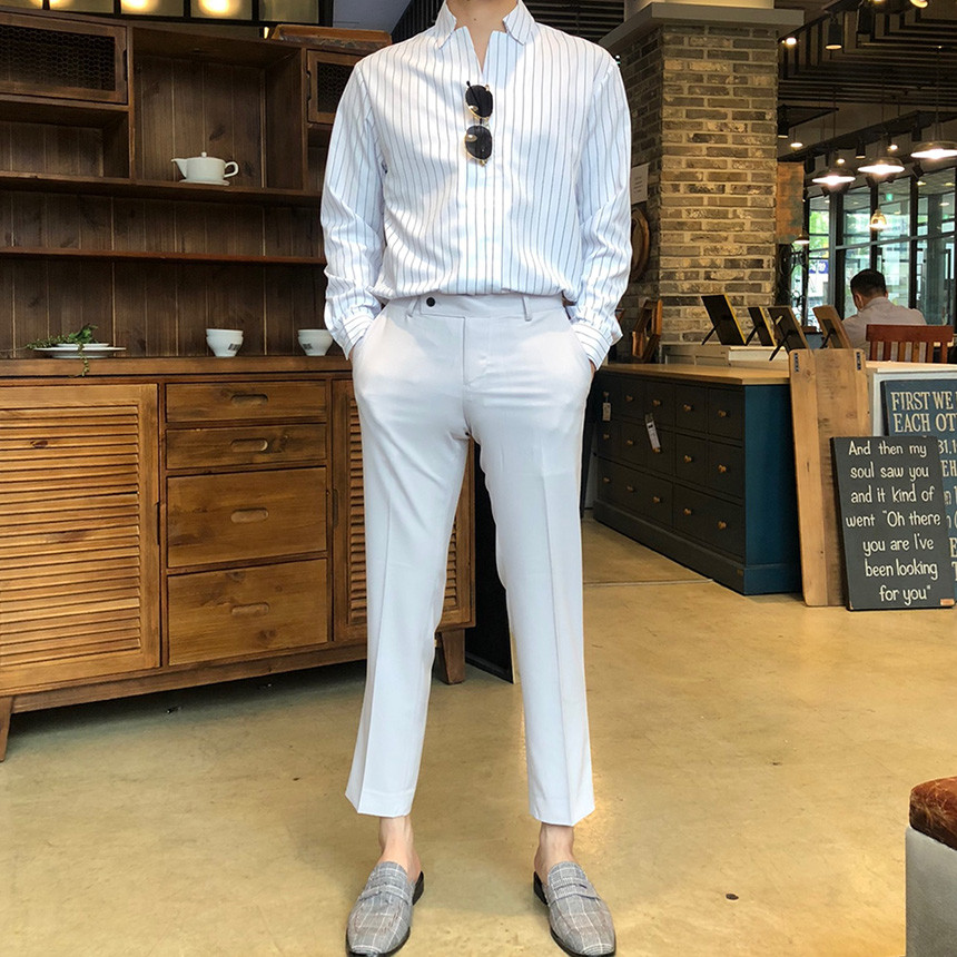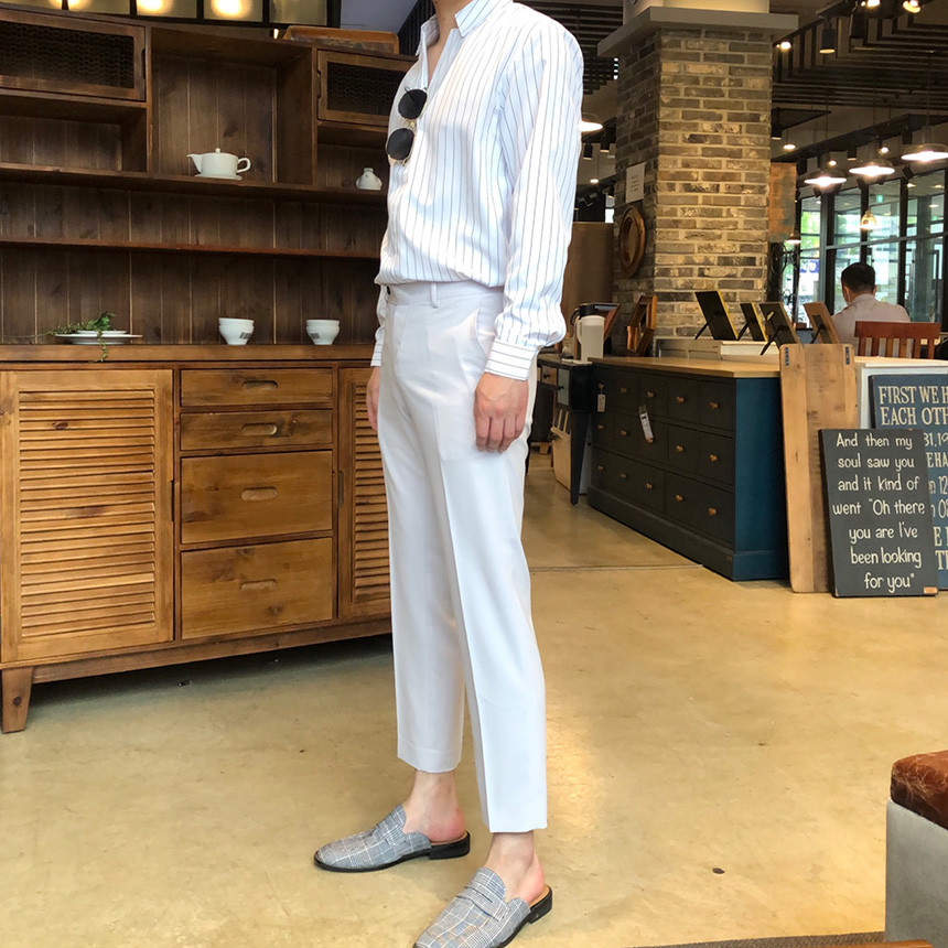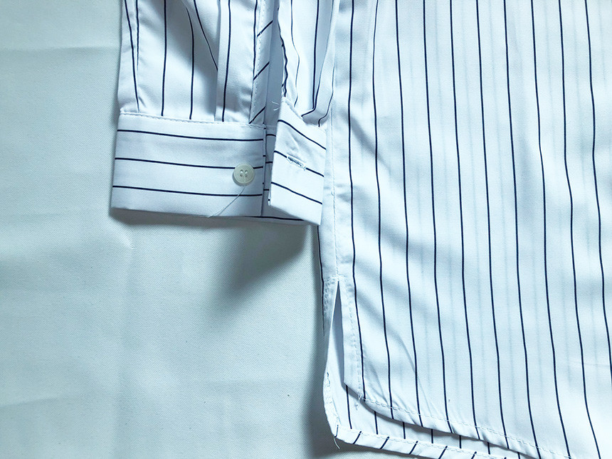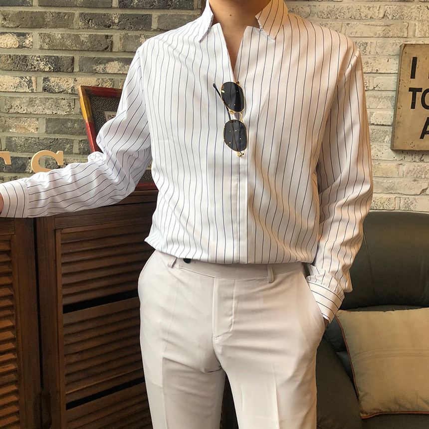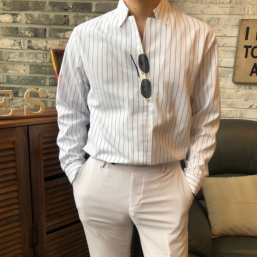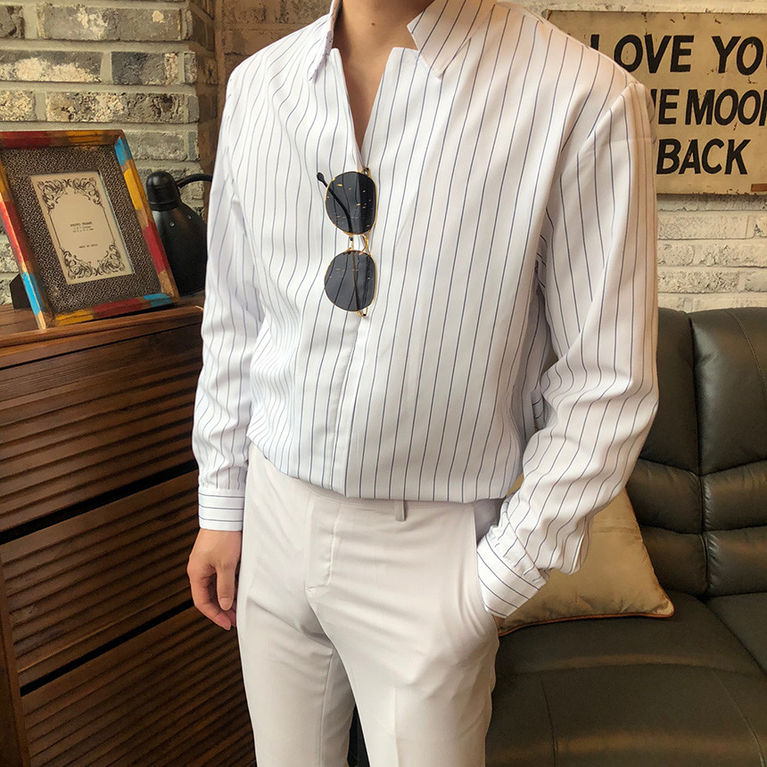 (spring) 화이트 스트라이프 반오픈 스냅 셔츠 [S116]