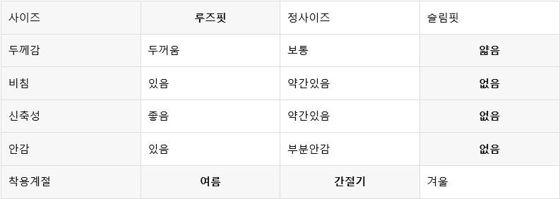 평소 입던 스타일과 달라 만족도가 낮을 수 있습니다