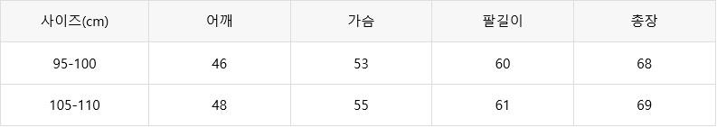 예시)본인사이즈100이면 100-105사이즈 구매 권장