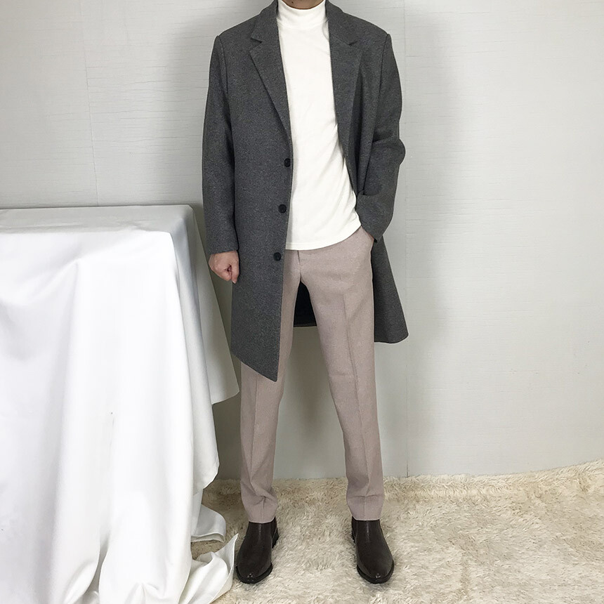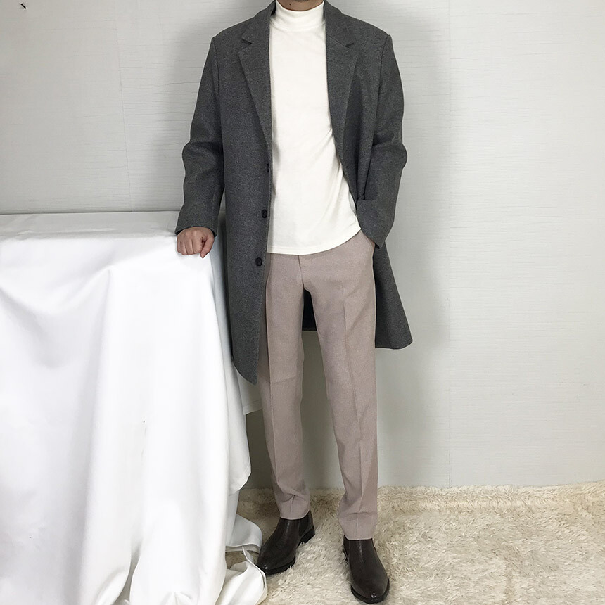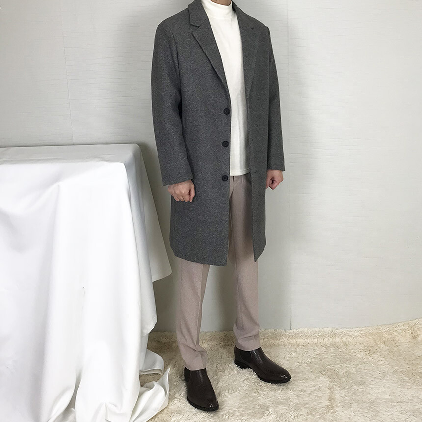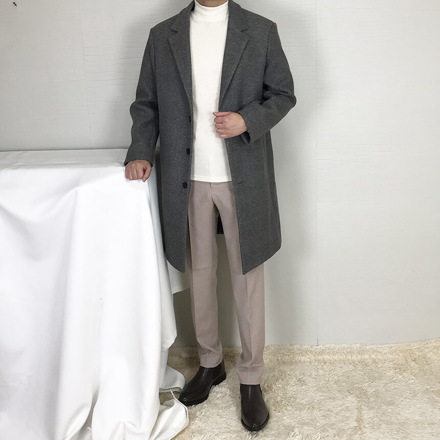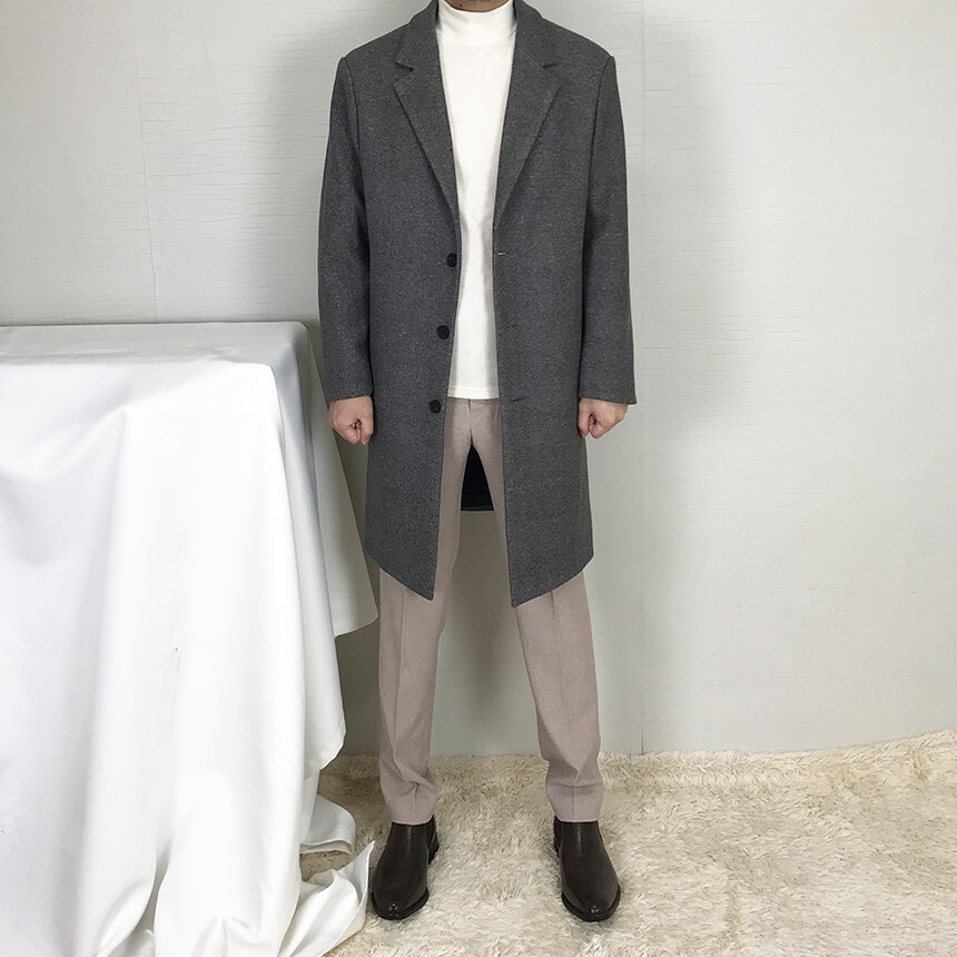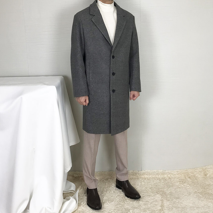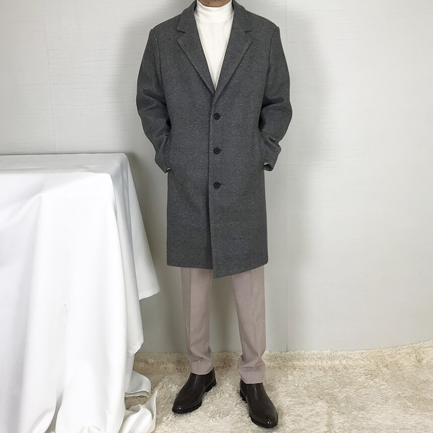 오버핏 멜란지차콜그레이 싱글 모직코트