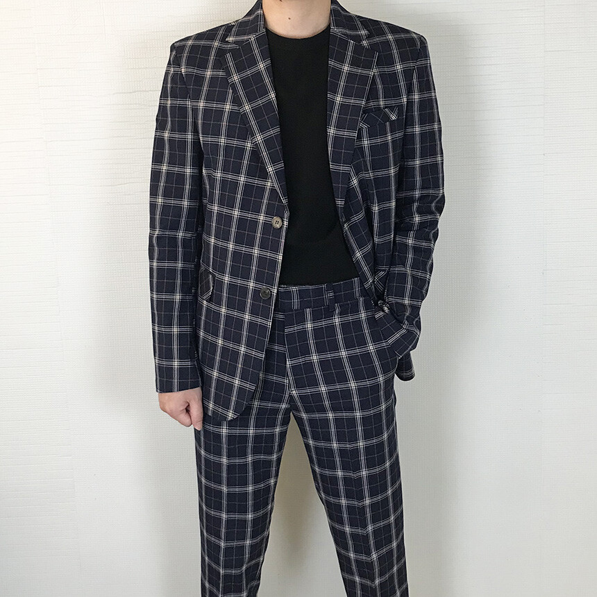 (summer) KM 체크 네이비 쓰리피스 수트 [FLCM1836]