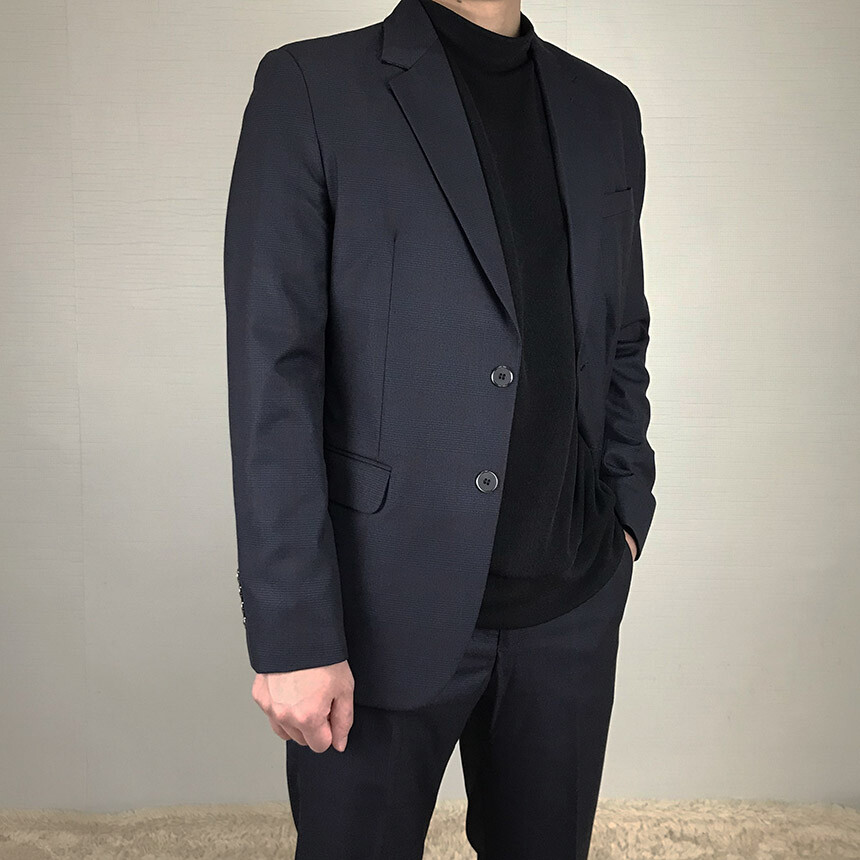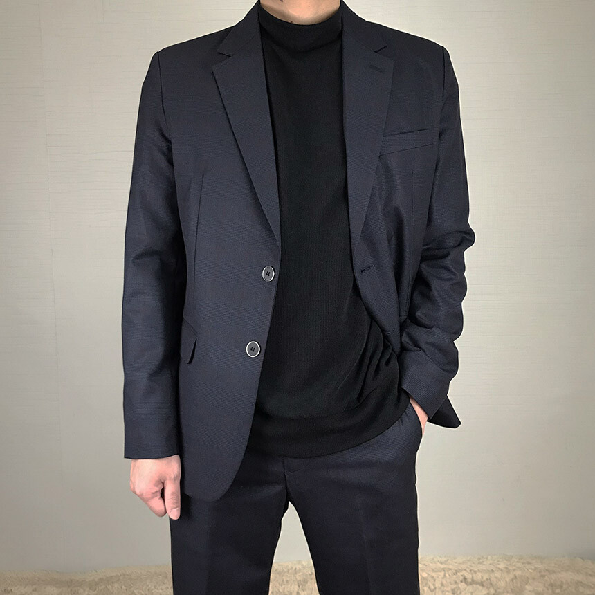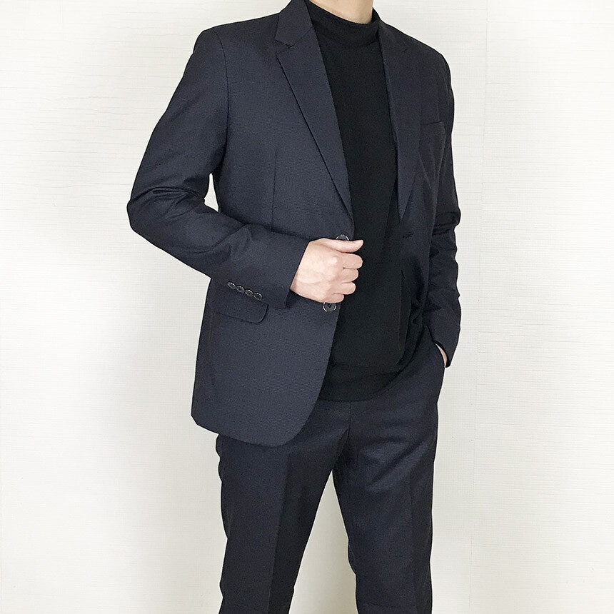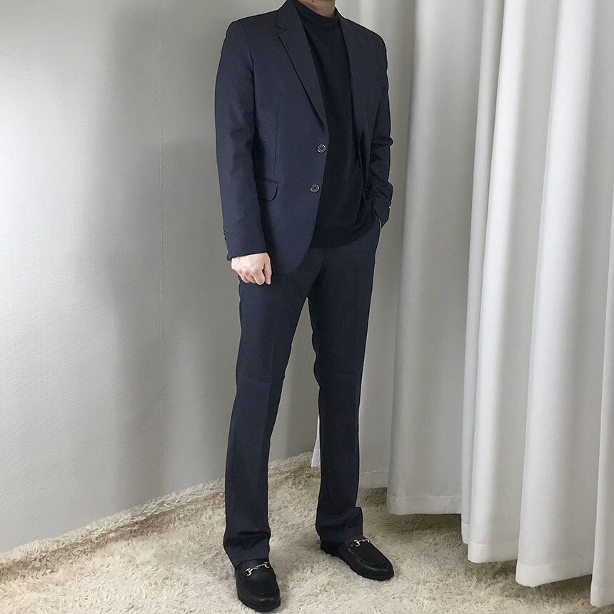 (간절기) 네이비 연체크 일자 바지 수트 [BXAFLBS1676]