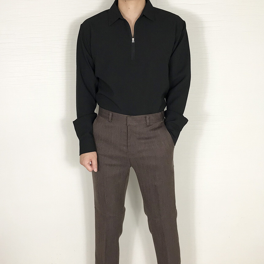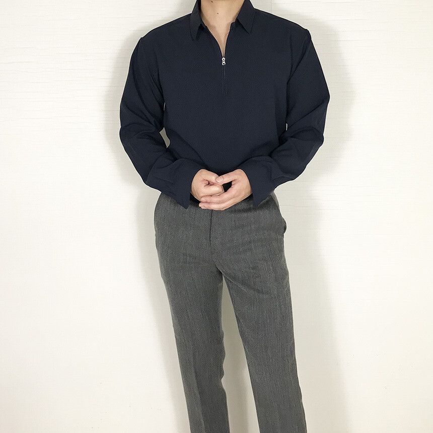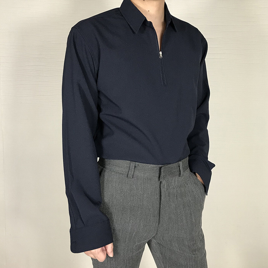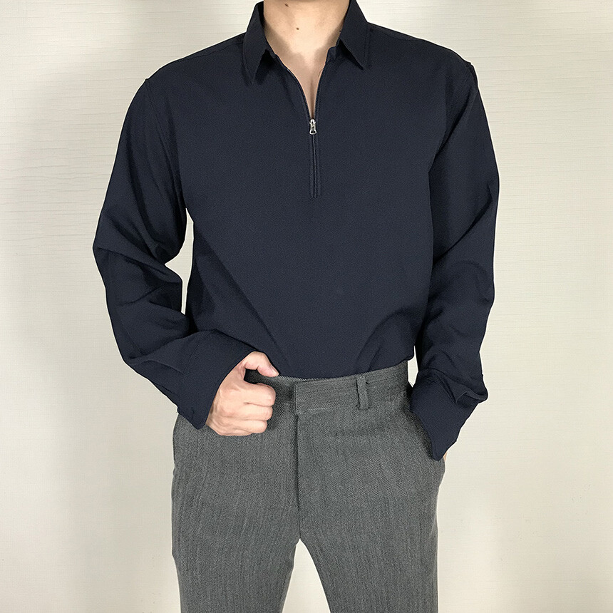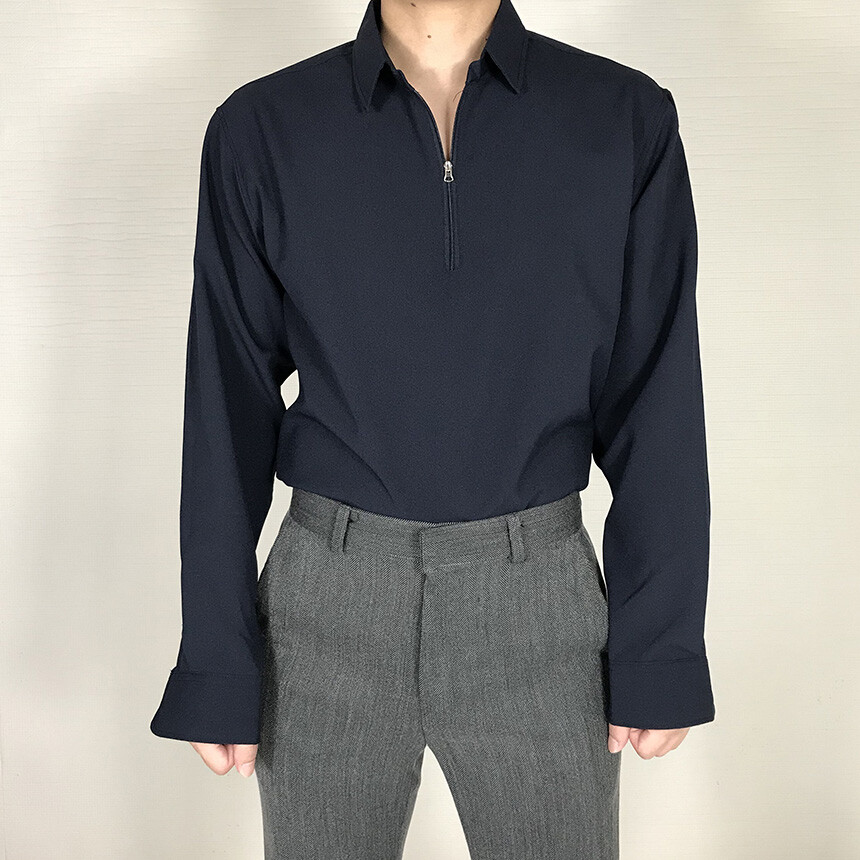 (간절기) 세미오버 무지 반지퍼 셔츠