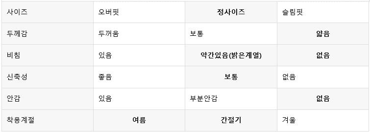 평소 입던 스타일과 달라 만족도가 낮을 수 있습니다