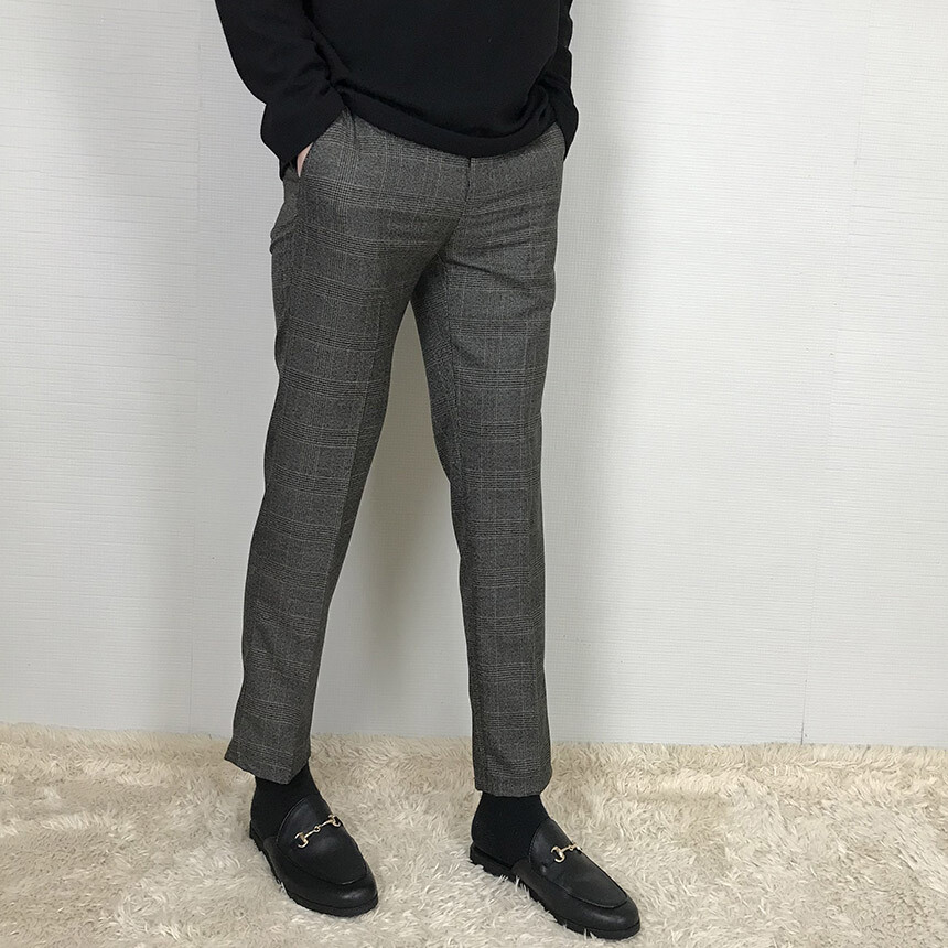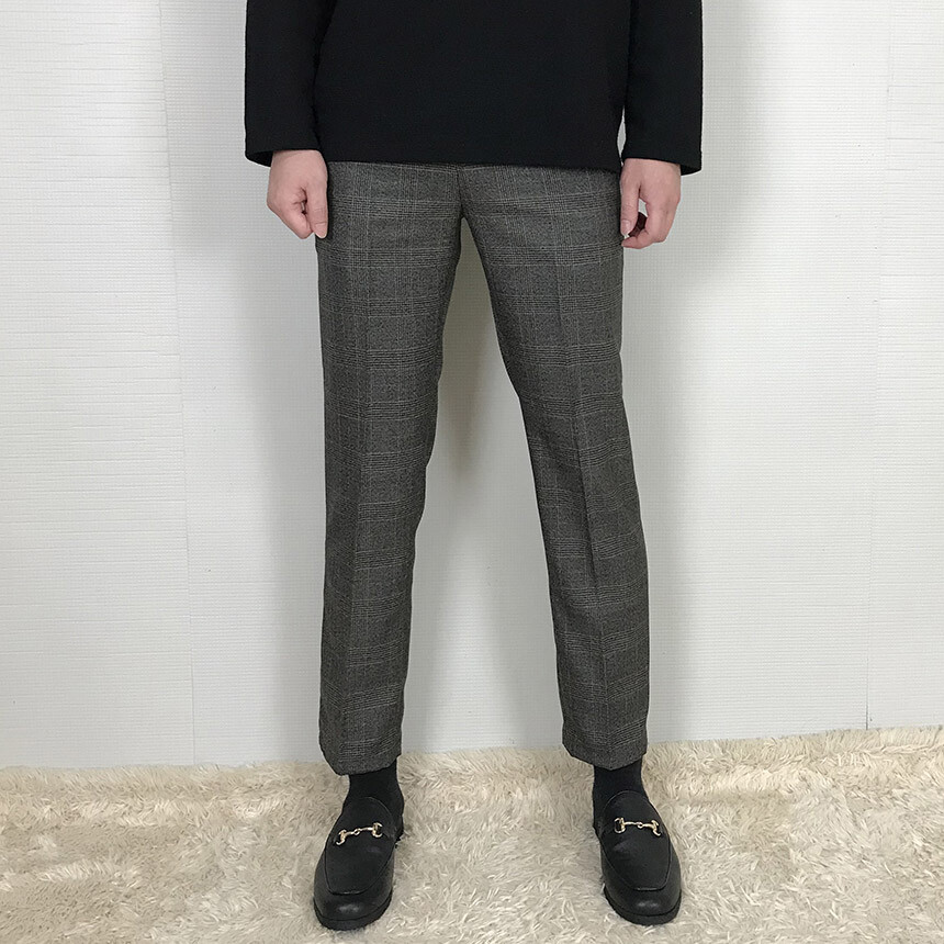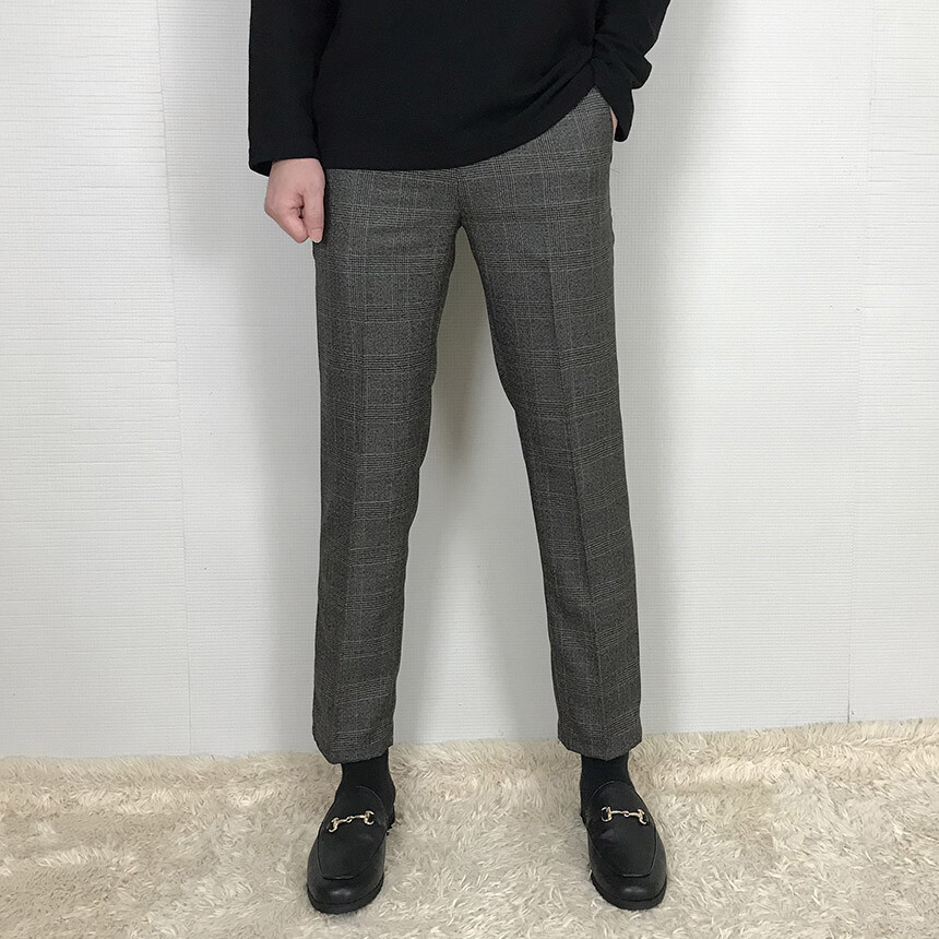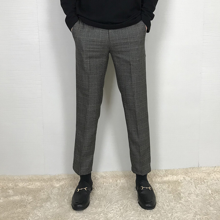 (Spring) 차콜브라운 체크 슬림 9부 슬랙스 [BXAFLCS1689]