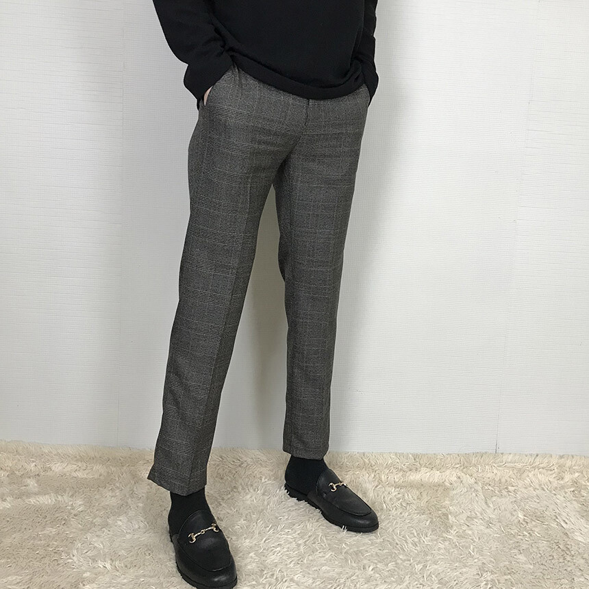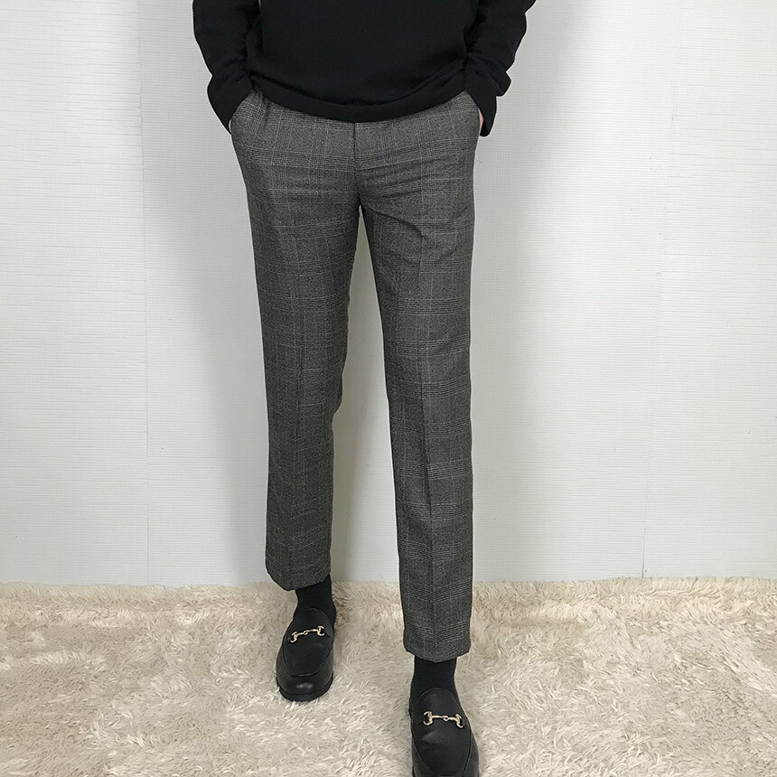 (Spring) 차콜브라운 체크 슬림 9부 슬랙스
