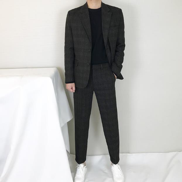 (winter) 슬림핏 윈터 카키블랙 체크 모직정장 [1910]