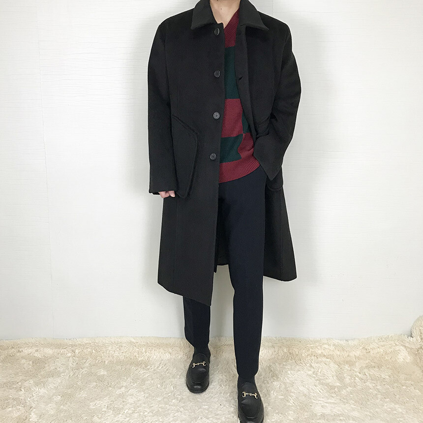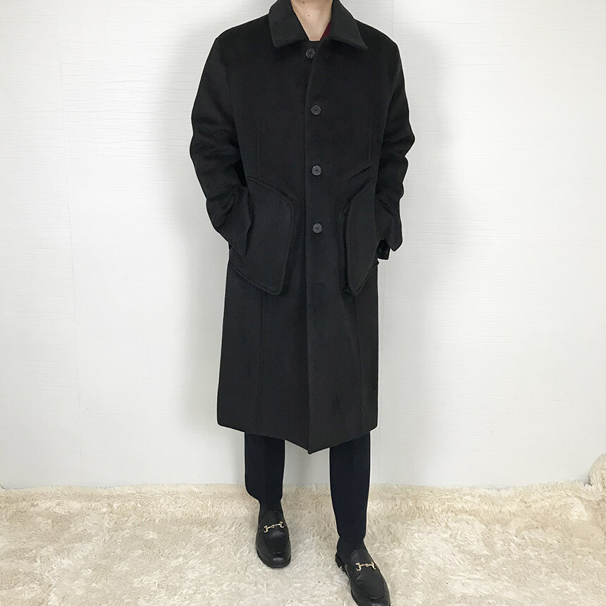 (겨울) 블랙 아웃포켓 오버 모직 롱코트