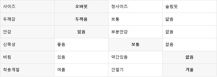 평소 입던 스타일과 달라 만족도가 낮을 수 있습니다