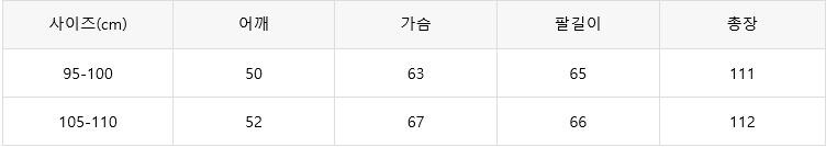 예시)본인사이즈100이면 100-105사이즈 구매 권장