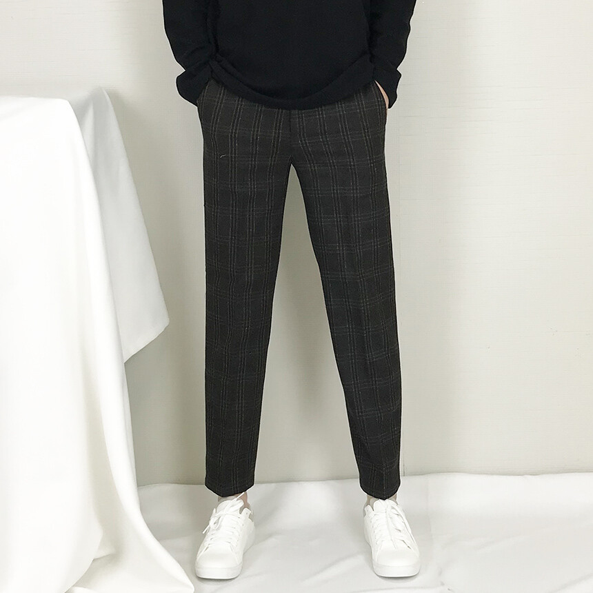 (winter) 카키블랙 체크 모직 캐주얼 슬랙스 [FLCW1910]