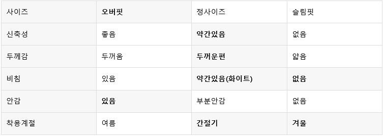 평소 입던 스타일과 달라 만족도가 낮을 수 있습니다