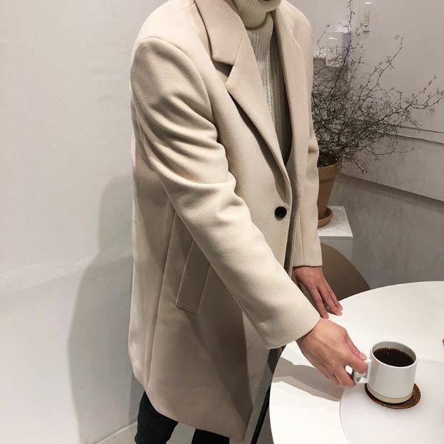 (winter) 오버핏 크림베이지 울 싱글기본코트 [55109]