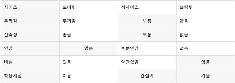 평소 입던 스타일과 달라 만족도가 낮을 수 있습니다
