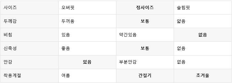 평소 입던 스타일과 달라 만족도가 낮을 수 있습니다