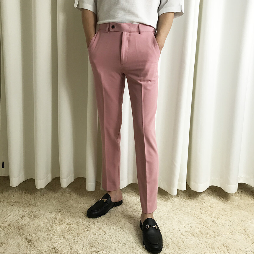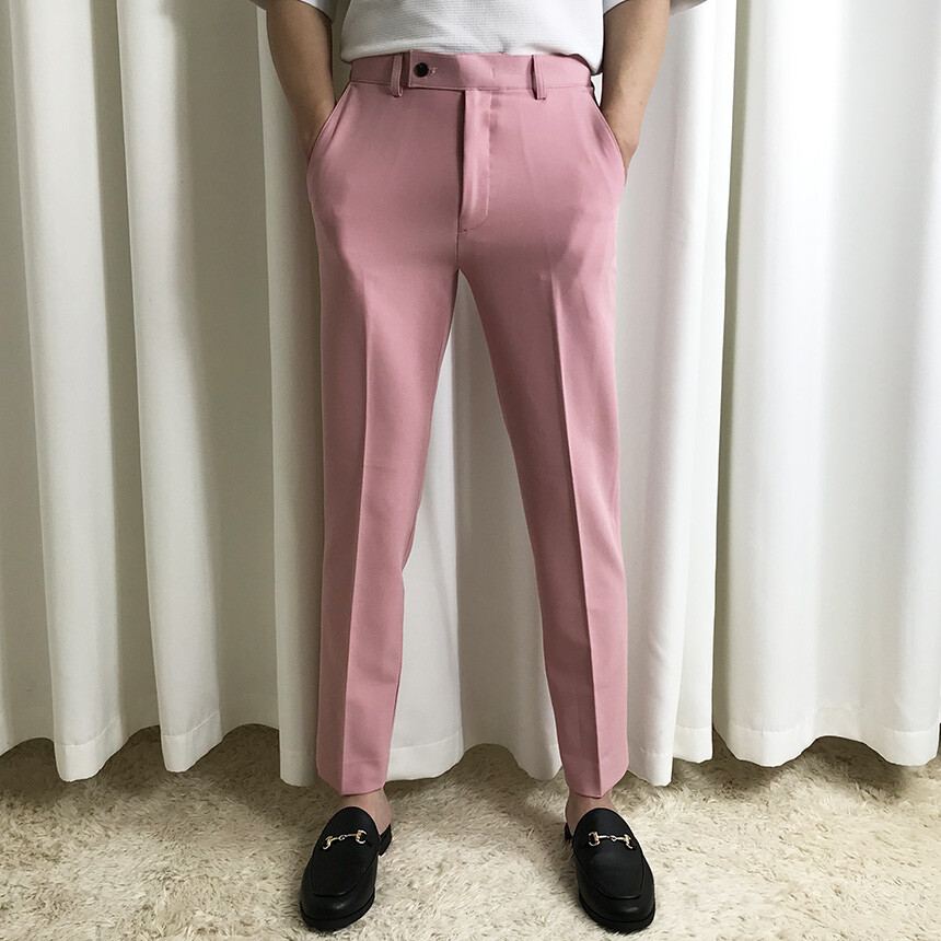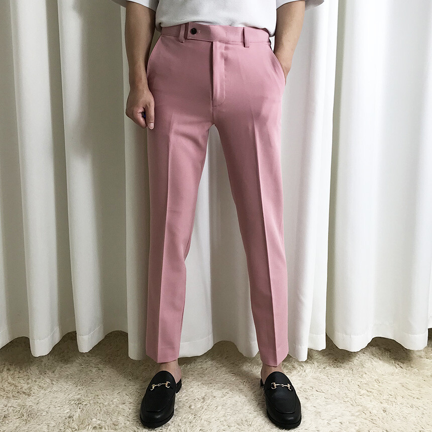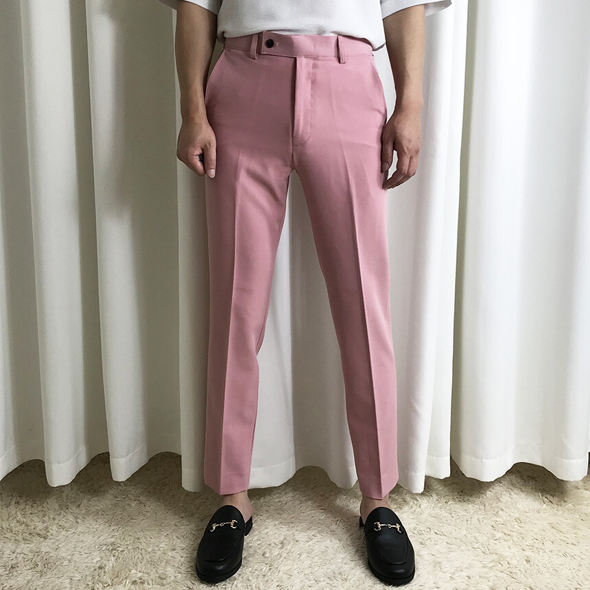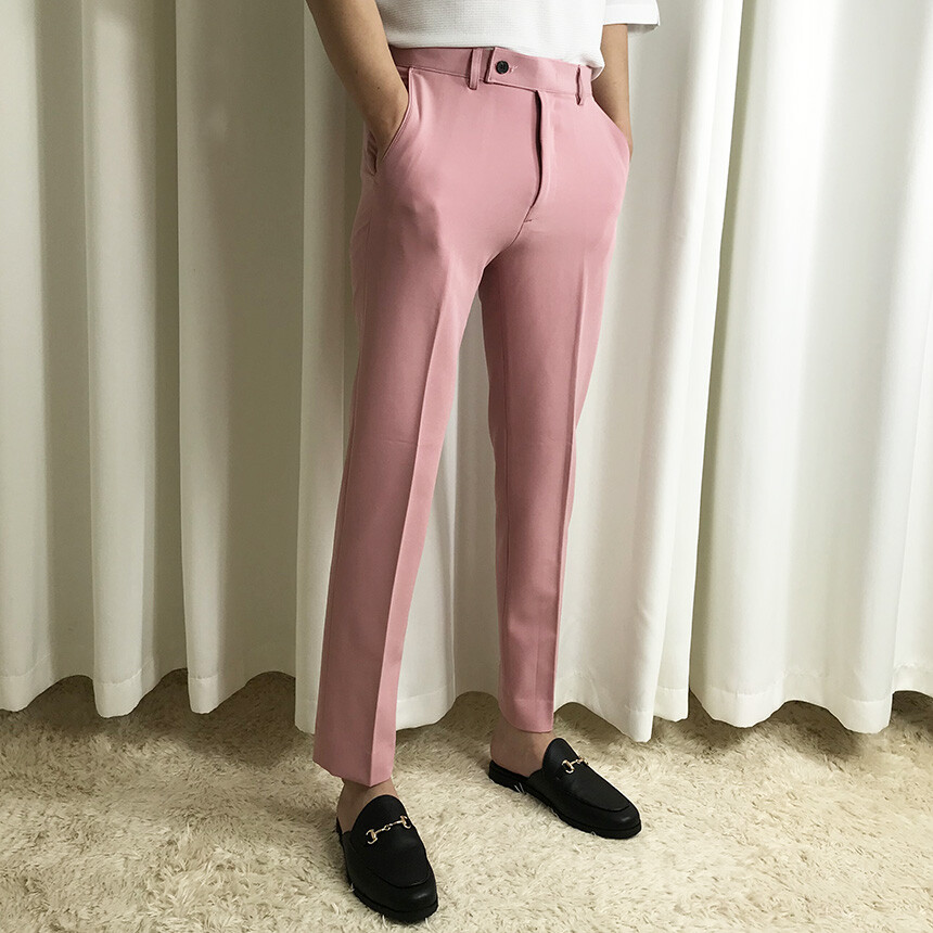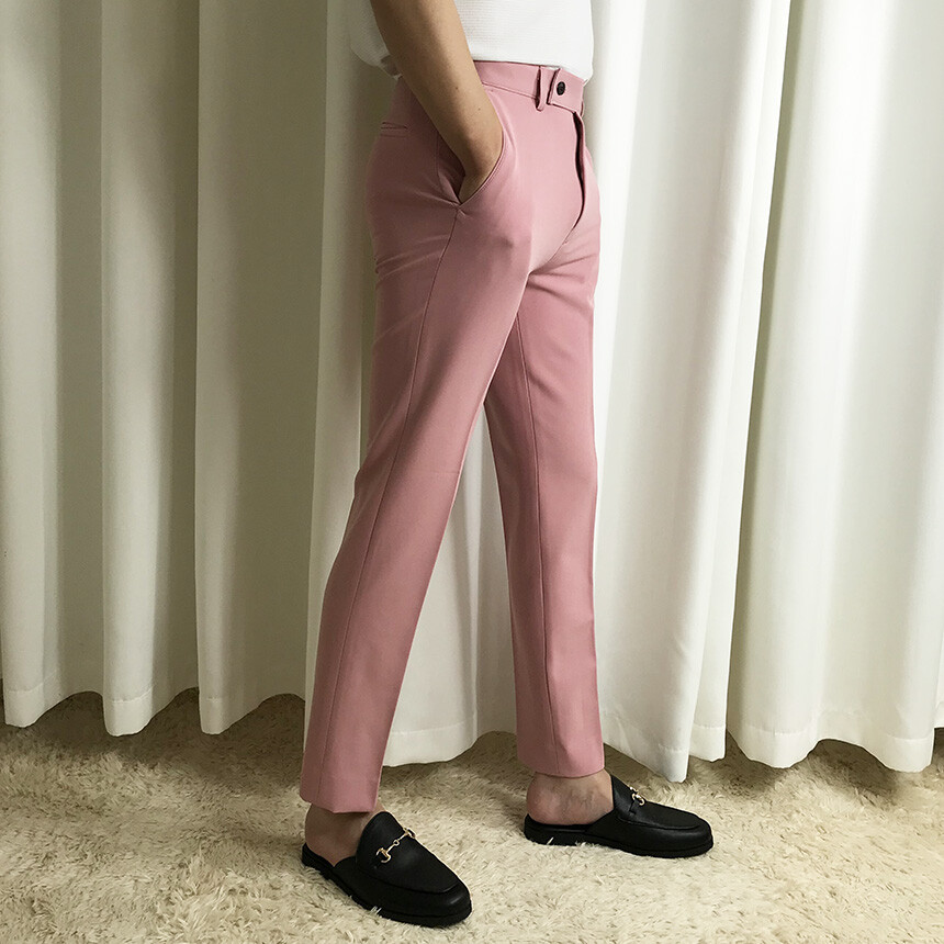 (간절기) 핑크 슬림 세미 9부 슬랙스