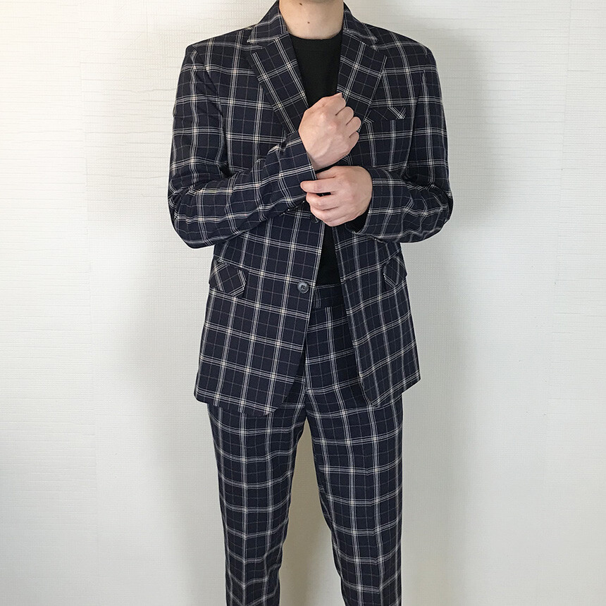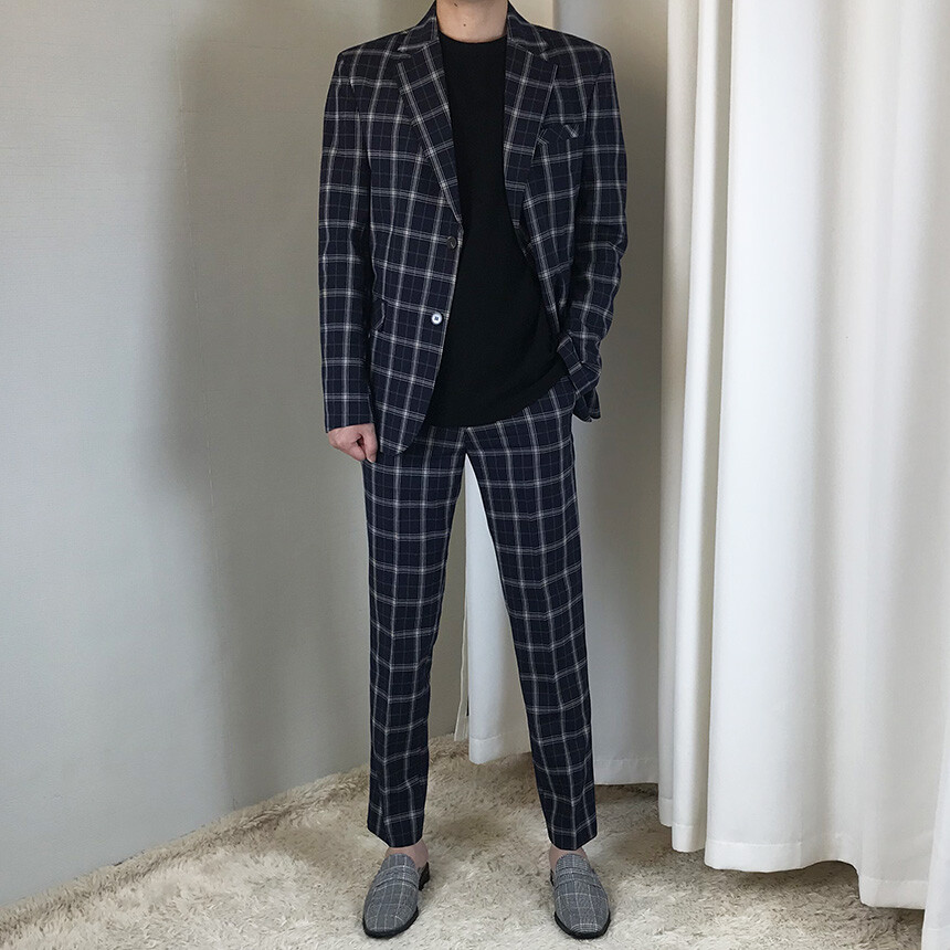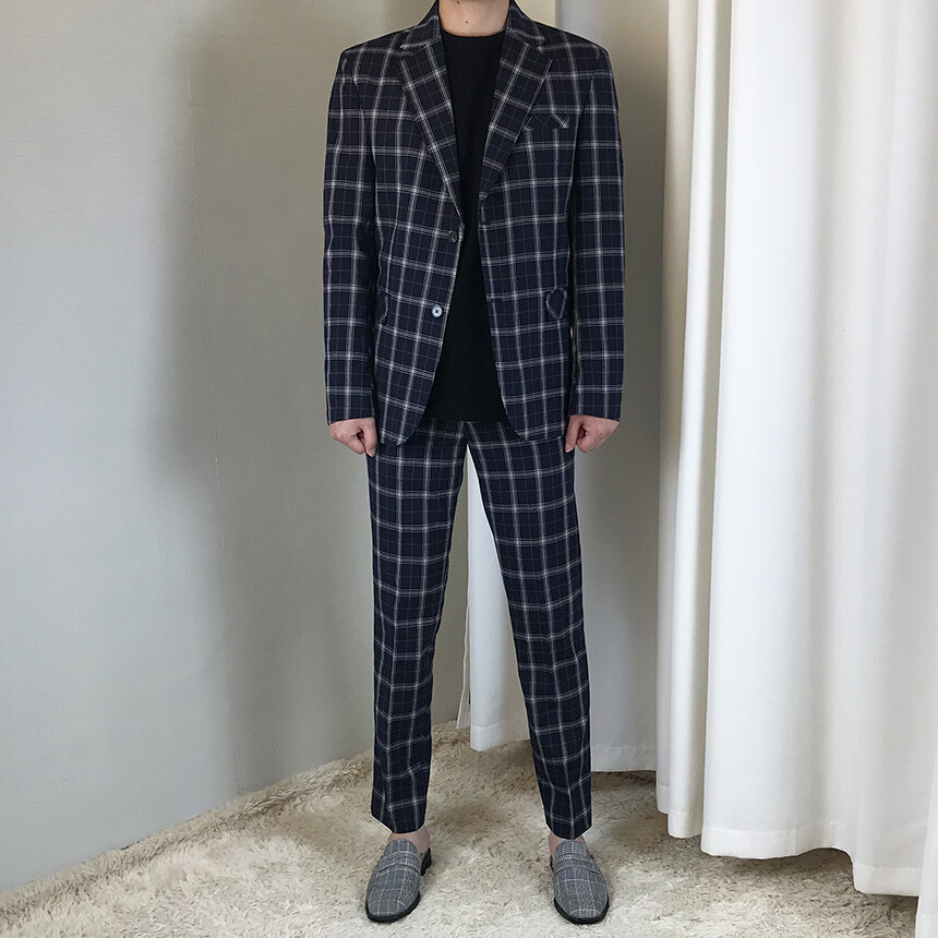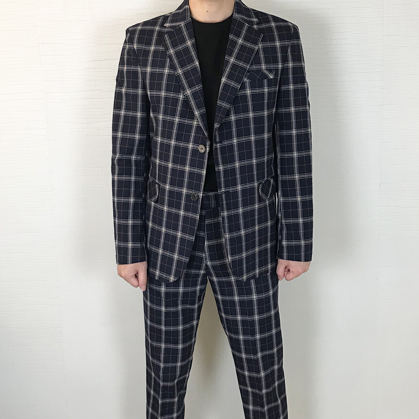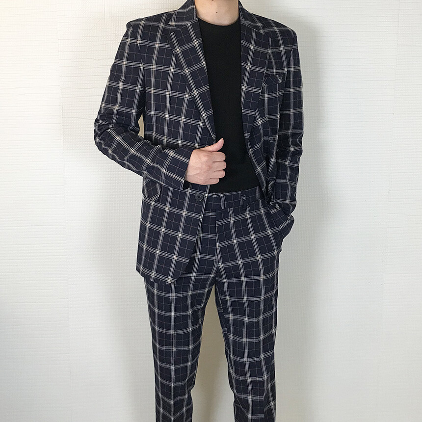 (summer) 네이비 체크 쿨링 세미 정장 [BXAFLCM1836]