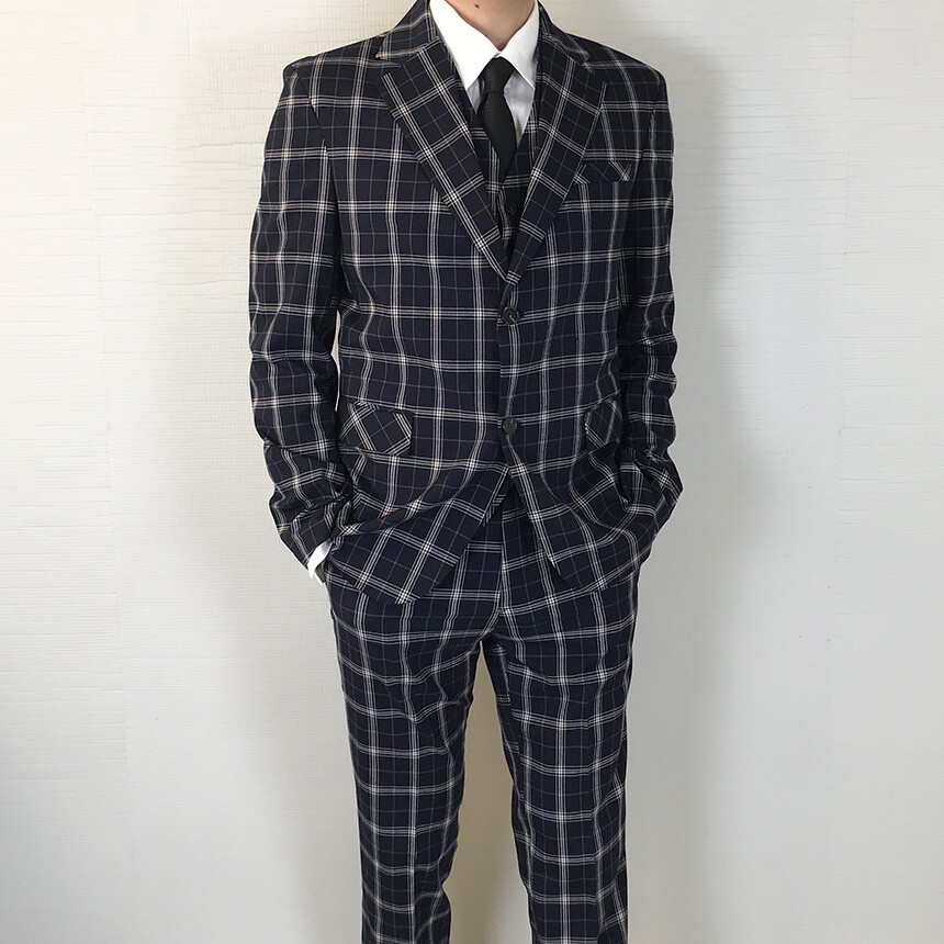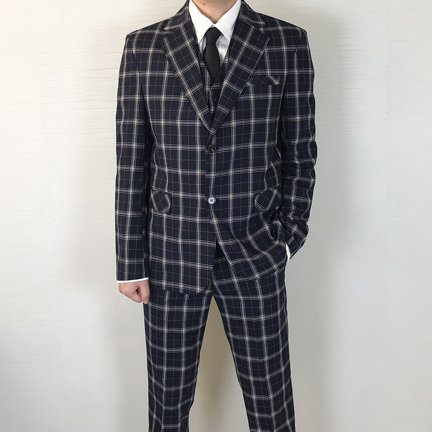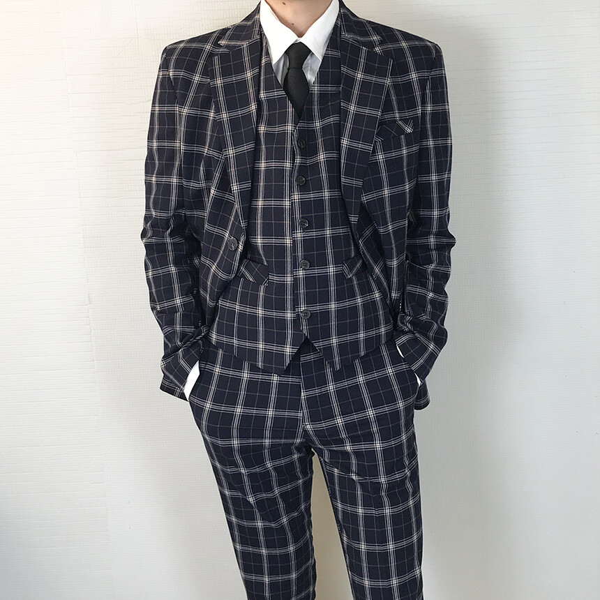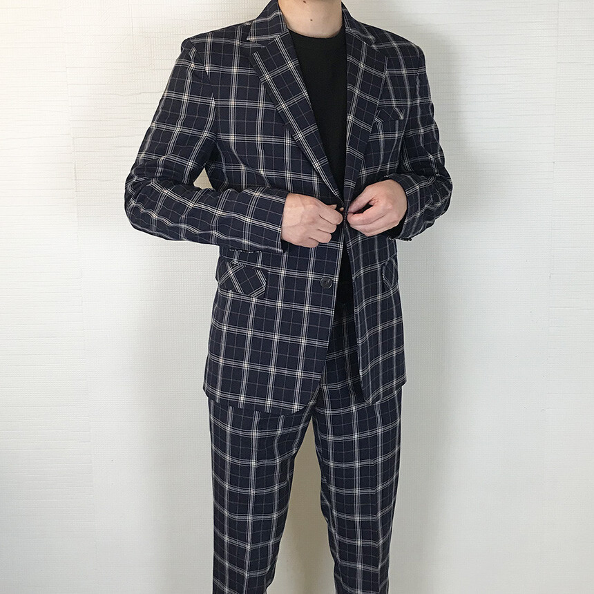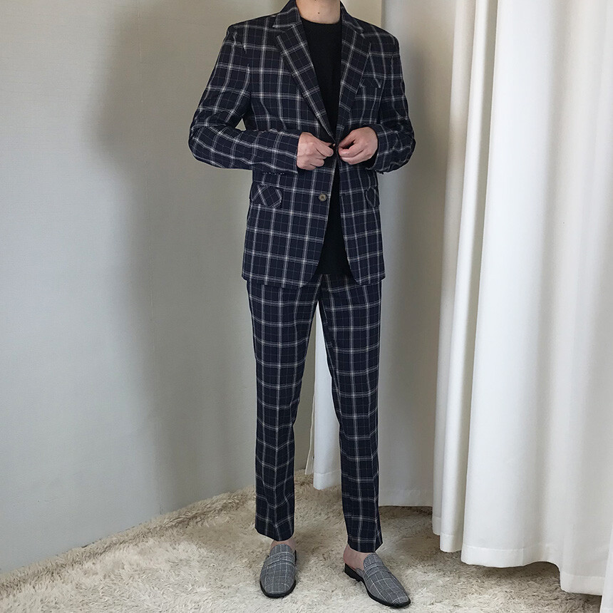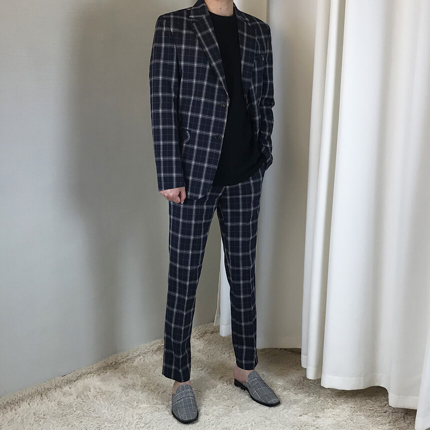 (summer) 네이비 체크 쿨링 세미 정장 [BXAFLCM1836]
