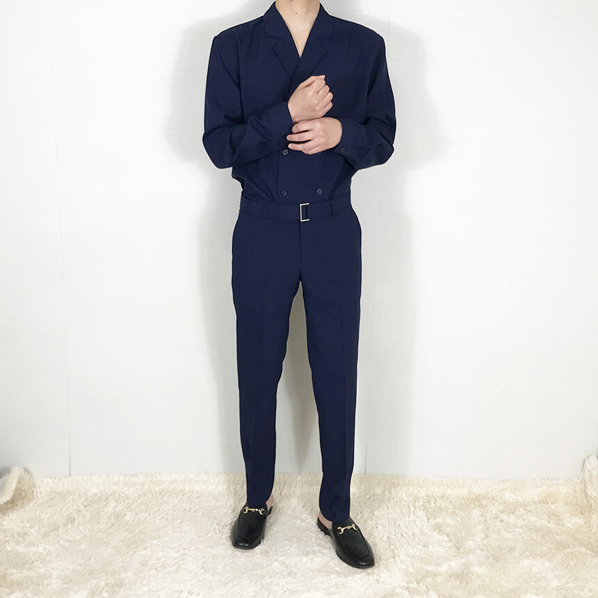 (summer) 세미오버핏 네이비더블셔츠 슬랙스 set [FLEM1950]