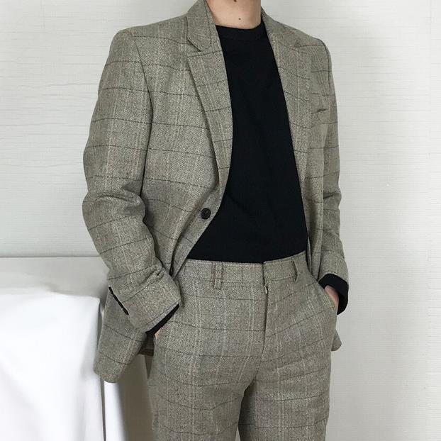(winter) 스탠다드핏 베이지 헤링본체크 울수트 [1909]
