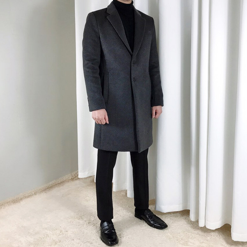 (winter) 울100% 슬림핏 차콜그레이 체스터 기본코트 [CLAW0057]