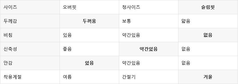 평소 입던 스타일과 달라 만족도가 낮을 수 있습니다